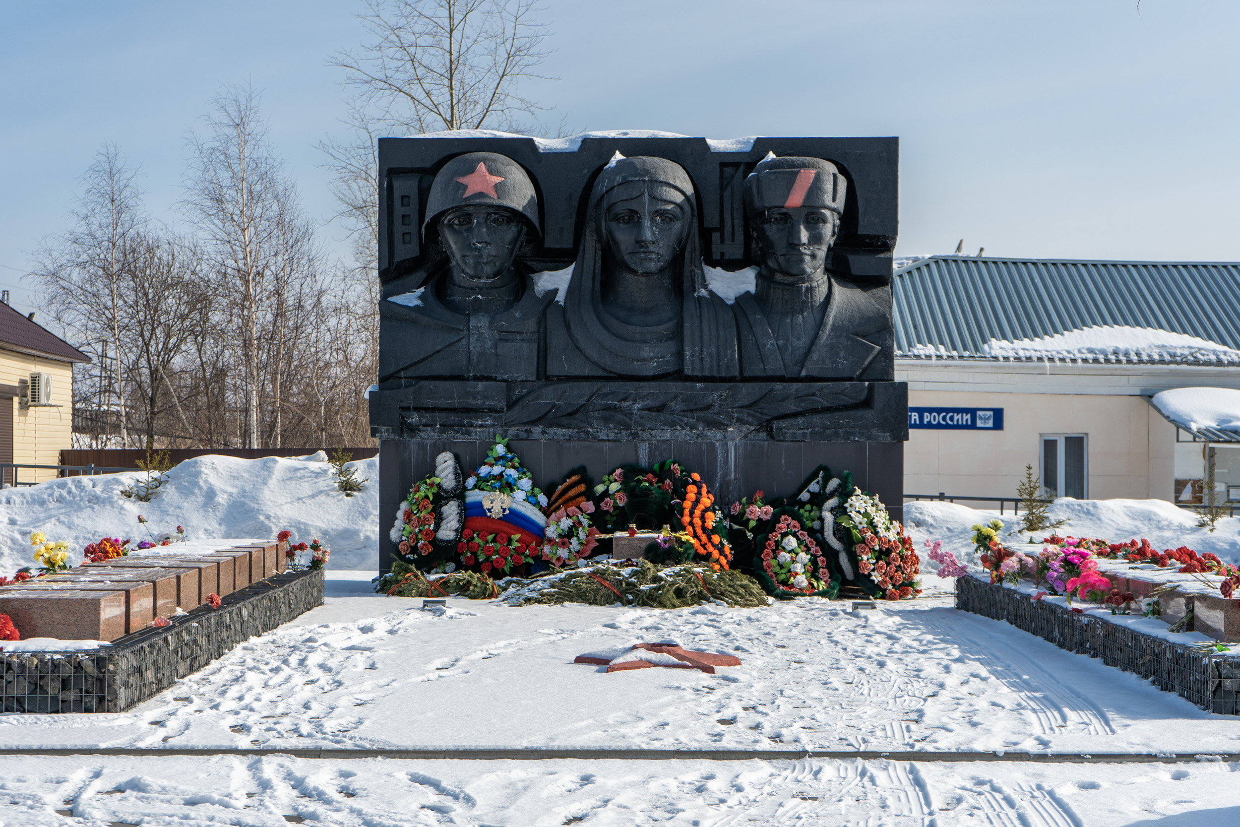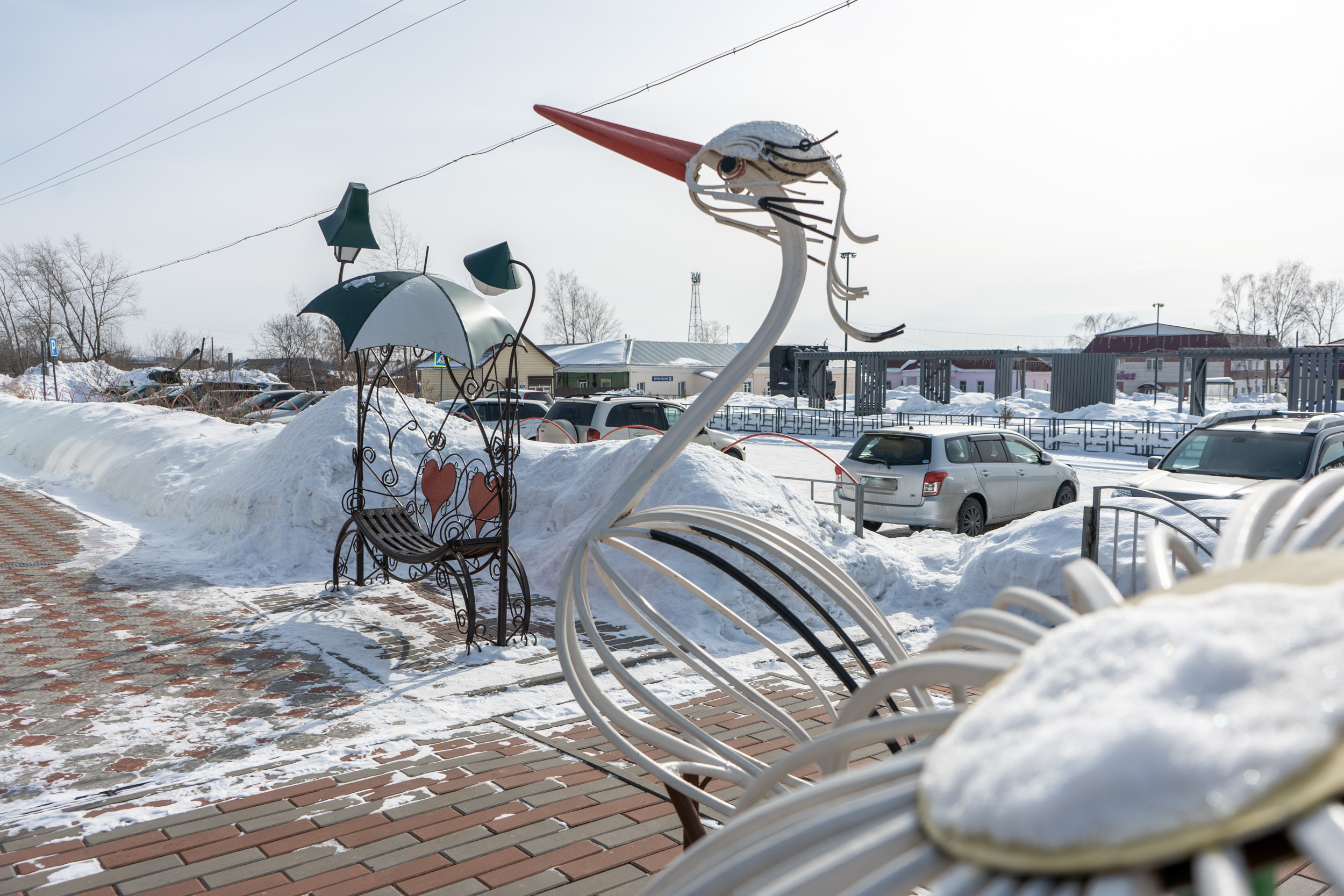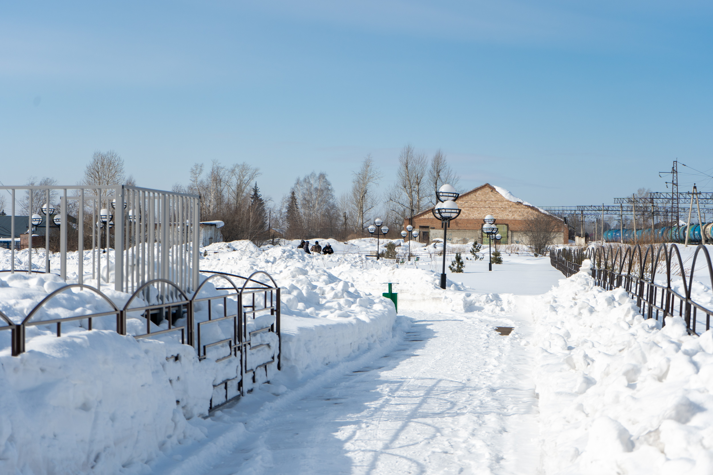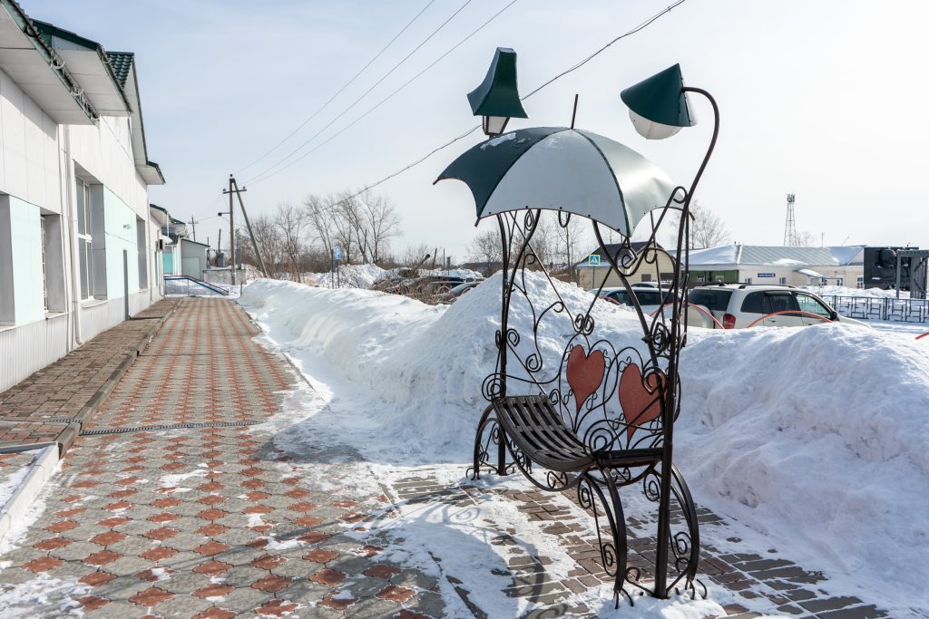 Небольшая железнодорожная станция, рядом с которой установлена скульптура паровоза Щп6520, памятник пограничникам и металлические скульптуры. Перед входом на станцию располагается парковка, а за ней небольшая огороженная площадь с благоустройством, концертной площадкой и мемориальной аллеей памяти ВОВ. Также неподалёку установлен памятник технике Тяжёлый танк ИС-3.