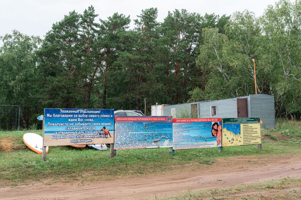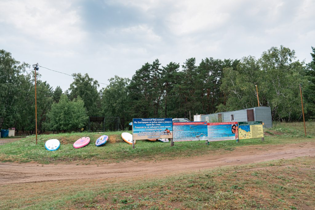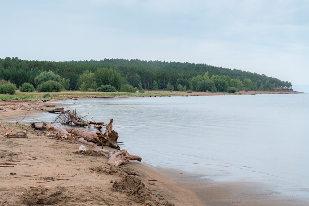 Пляж находится в 8 км от села Краснотуранск. Протяжённость около 4 км, здесь располагается база отдыха «Серебряный бор» имеющая все удобства и размещение. Есть как свободные площадки для отдыха, так и платные места.