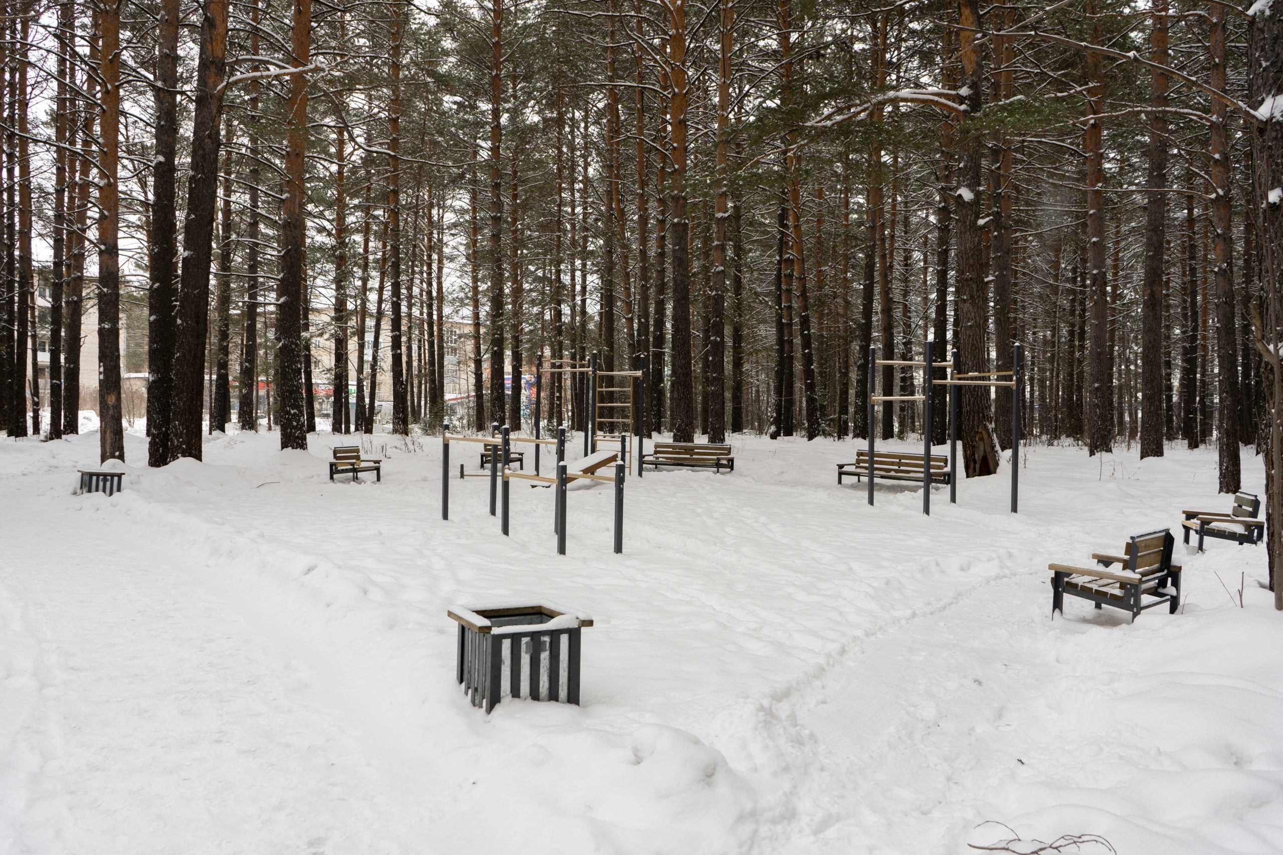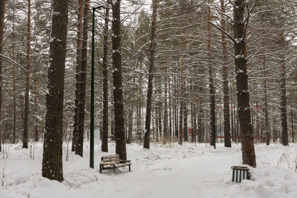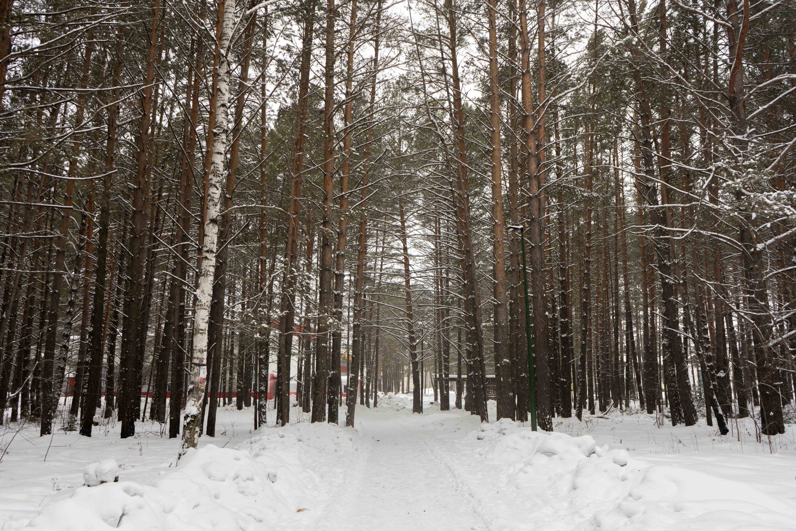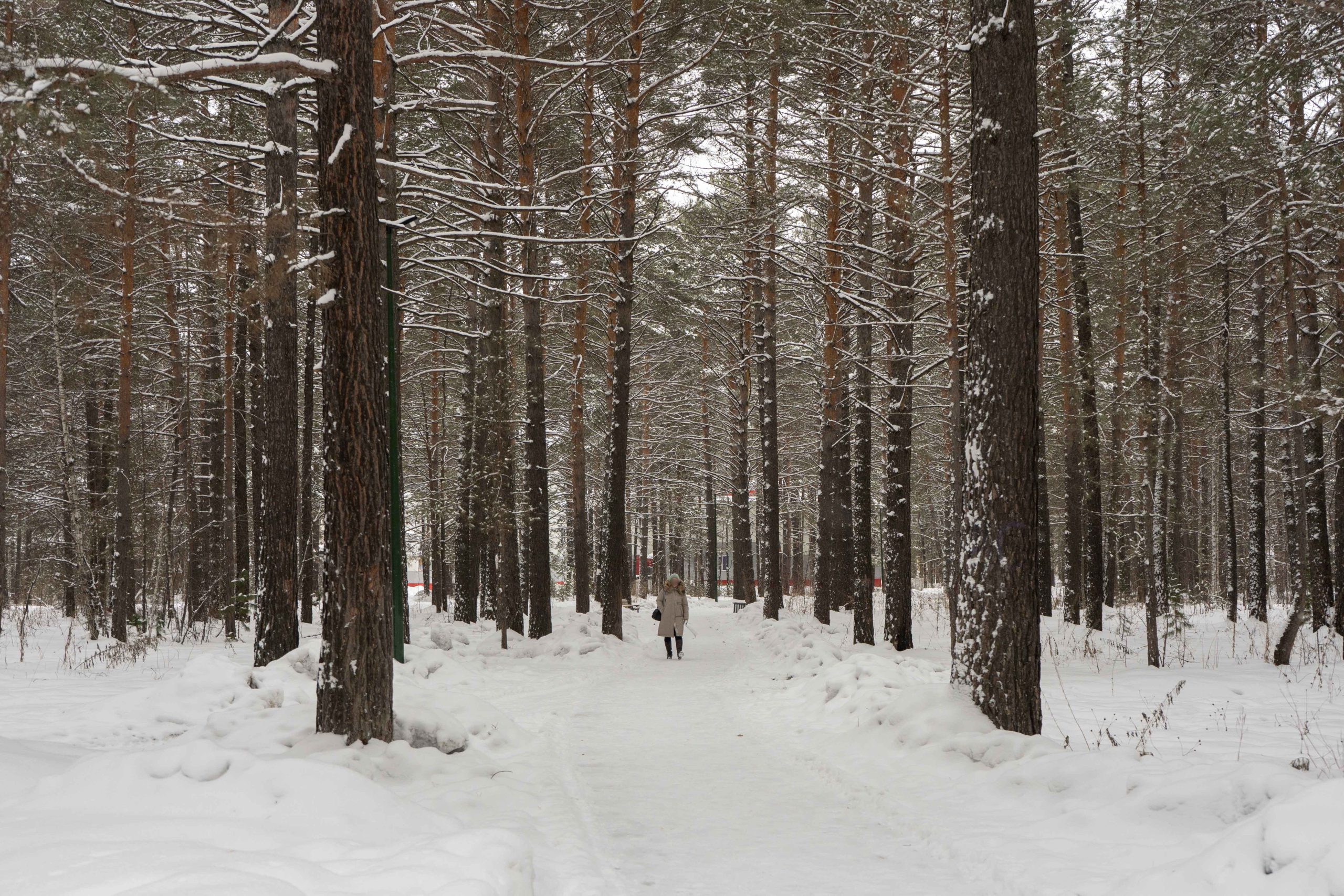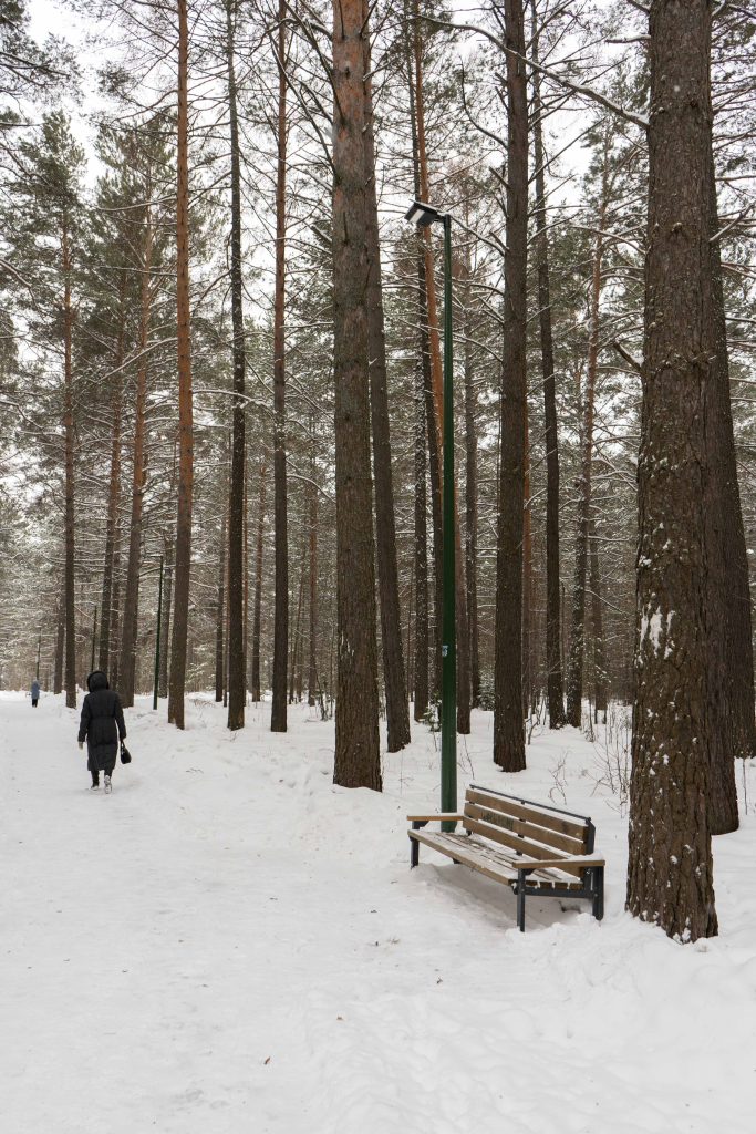 В центральном парке города Лесосибирска плотно растут взрослые сосны. Тут есть пешеходные тропинки, небольшое благоустройство с детской площадкой, скамейками урнами. Дорожки местами асфальтированные но по больше части гравийные. В северной границе парка находится кинотеатр «Луч». Размеры парка около 550x350 м.