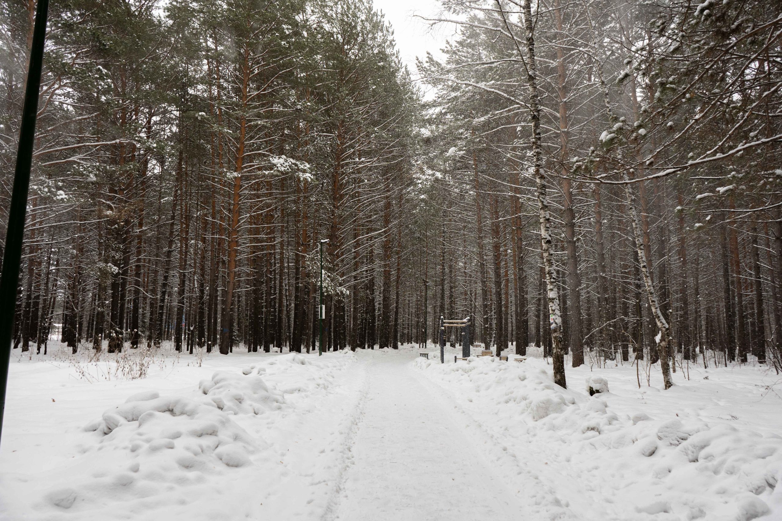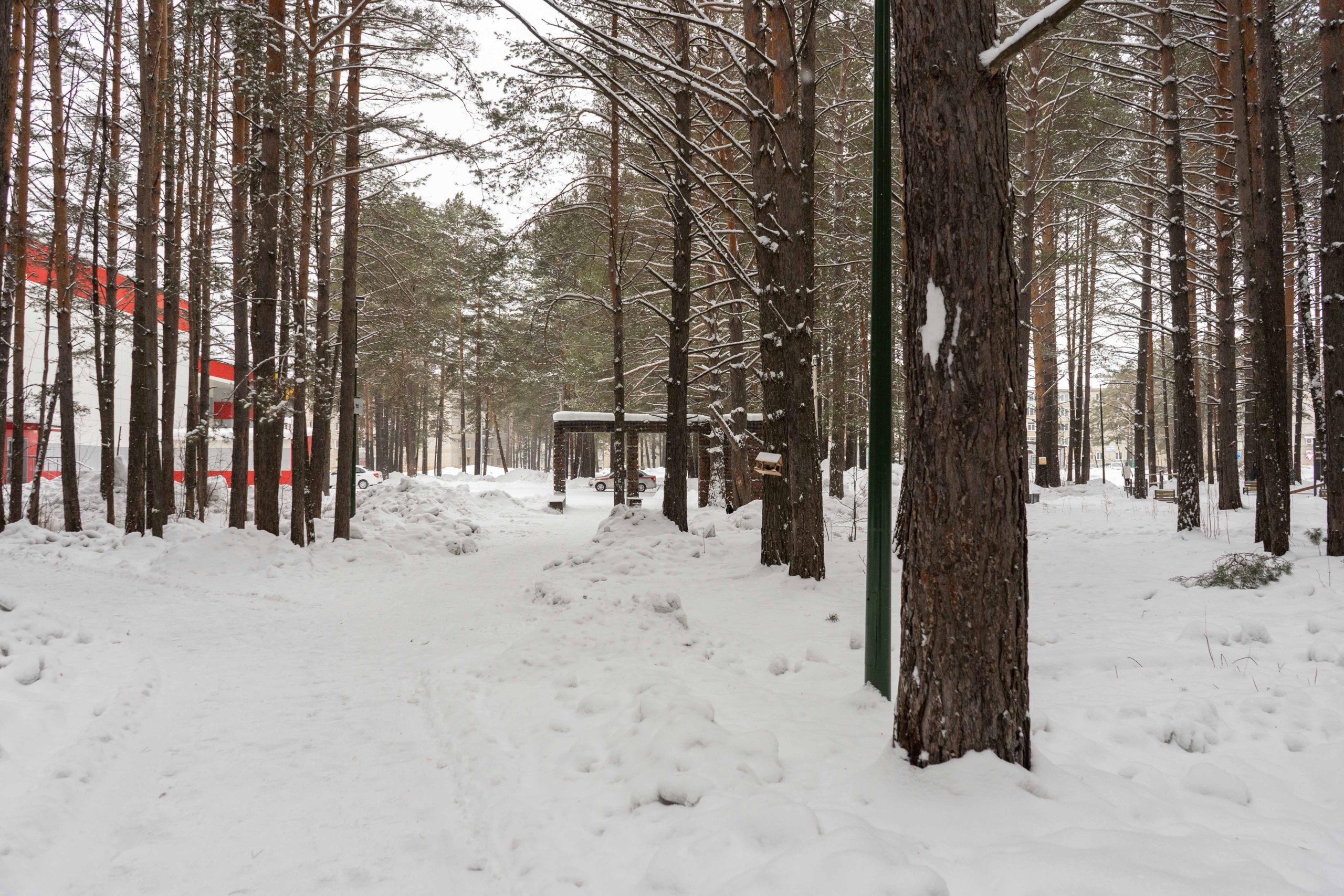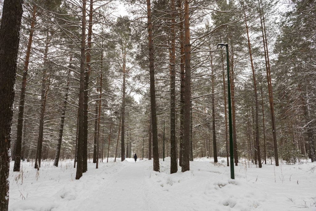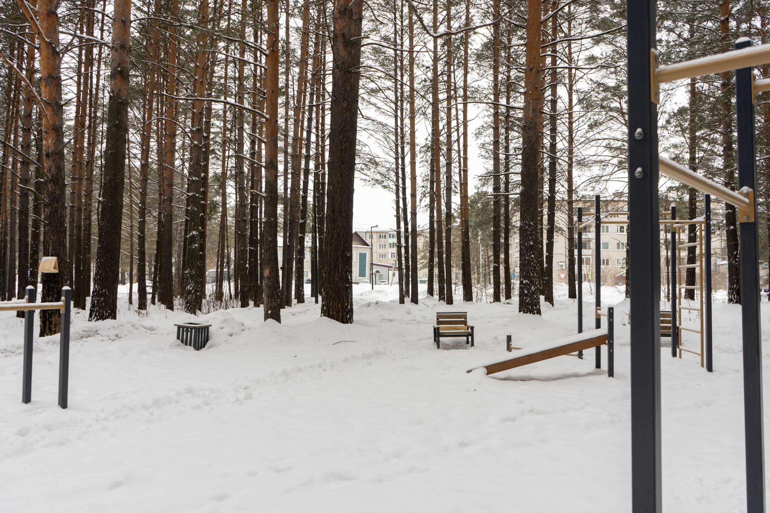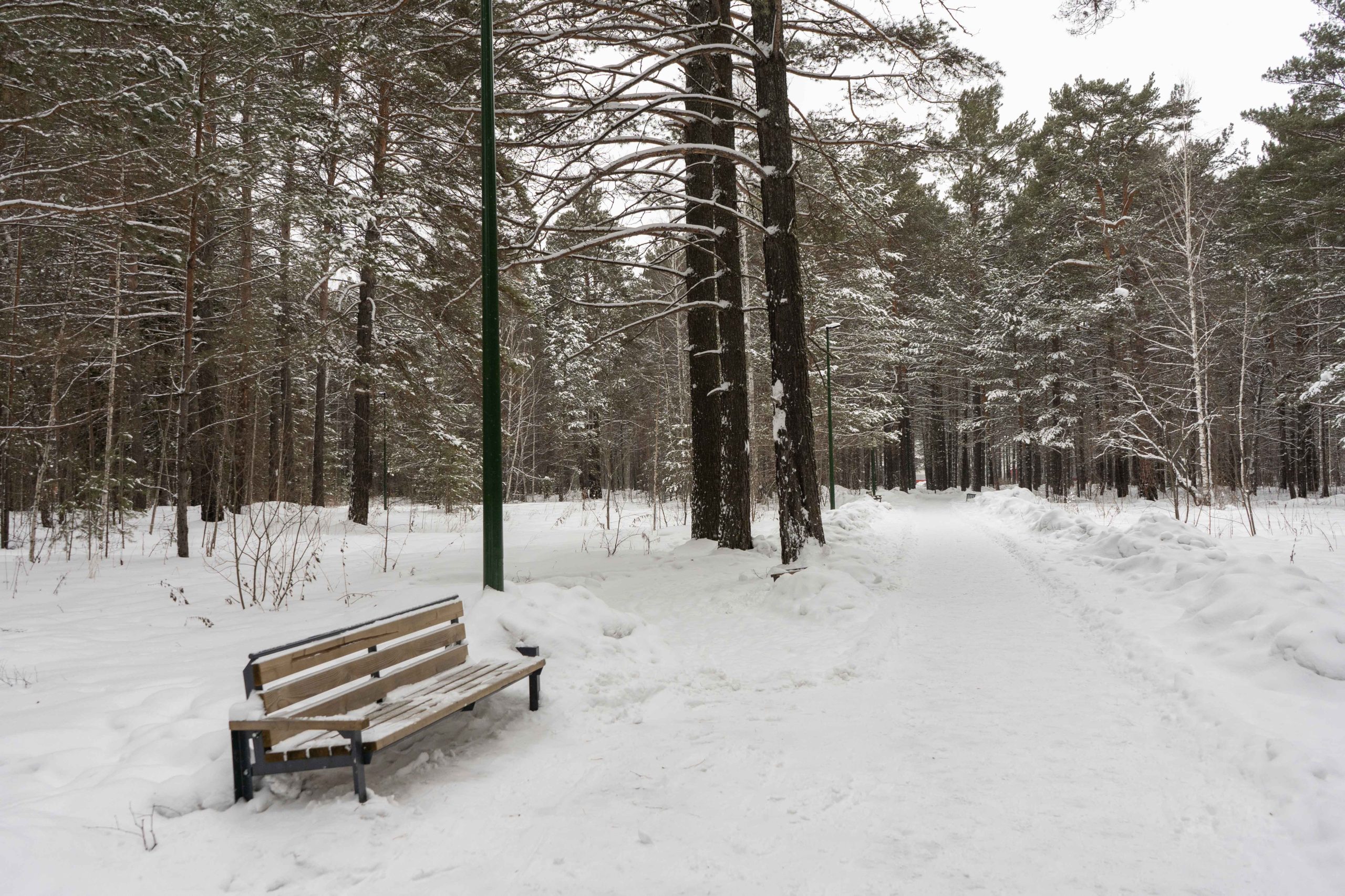 В центральном парке города Лесосибирска плотно растут взрослые сосны. Тут есть пешеходные тропинки, небольшое благоустройство с детской площадкой, скамейками урнами. Дорожки местами асфальтированные но по больше части гравийные. В северной границе парка находится кинотеатр «Луч». Размеры парка около 550x350 м.