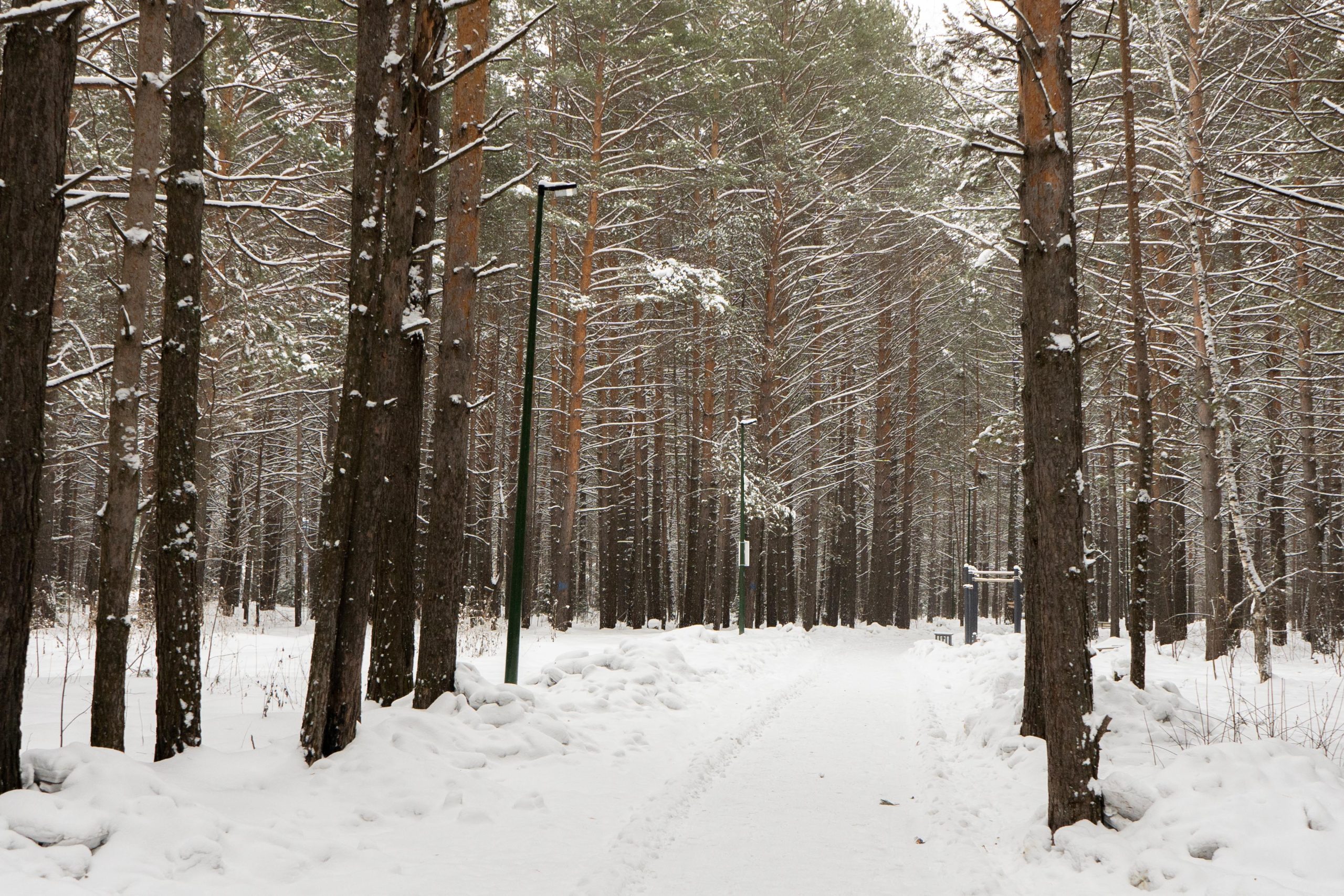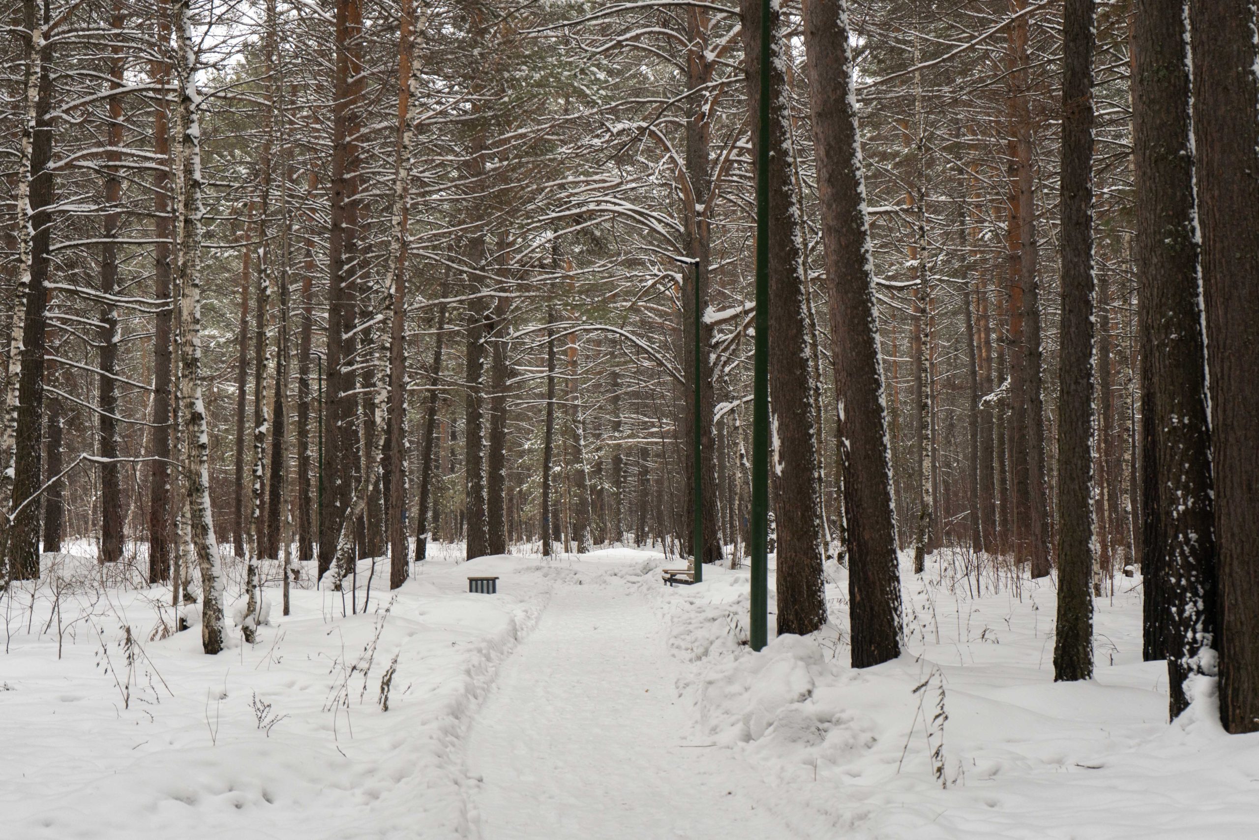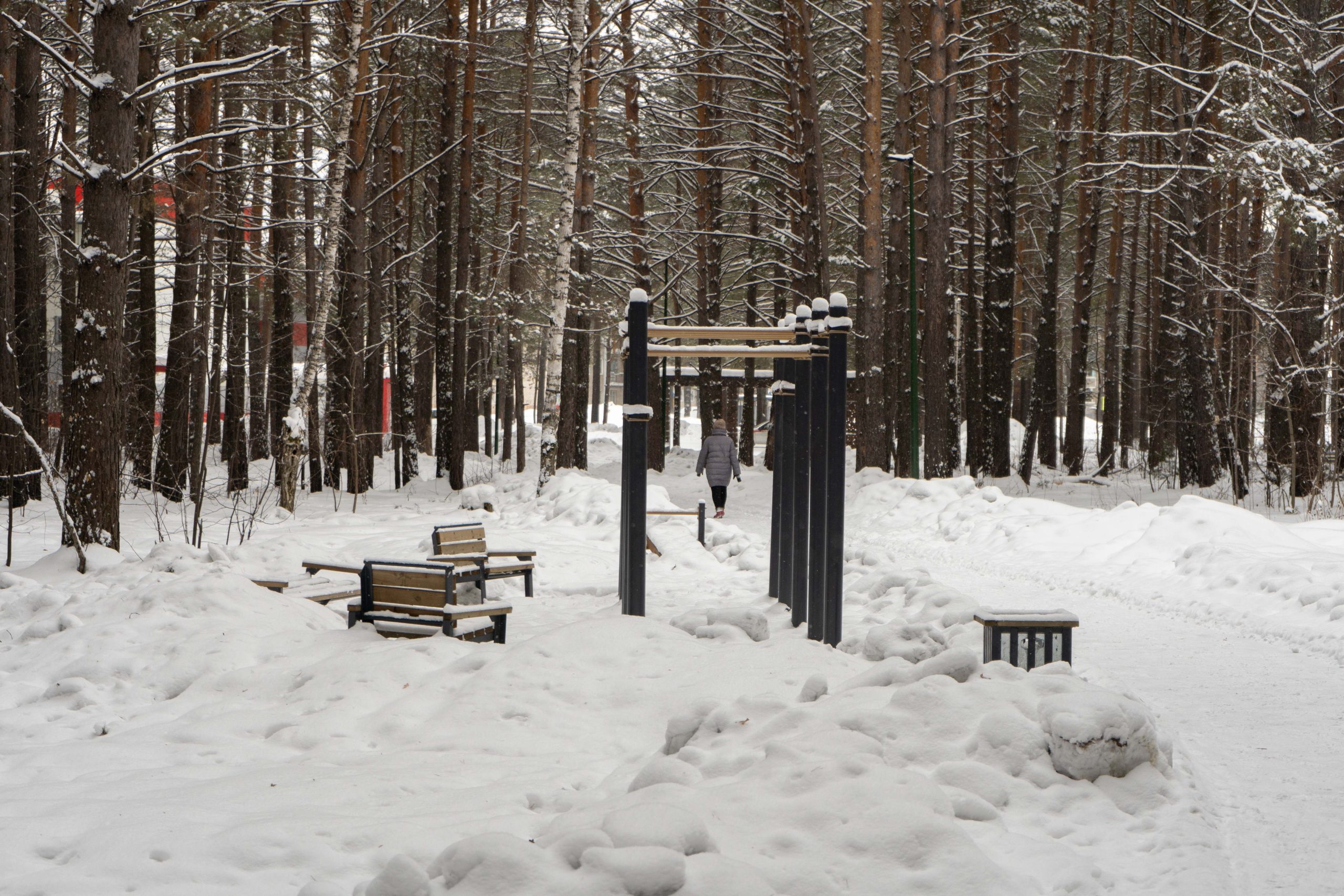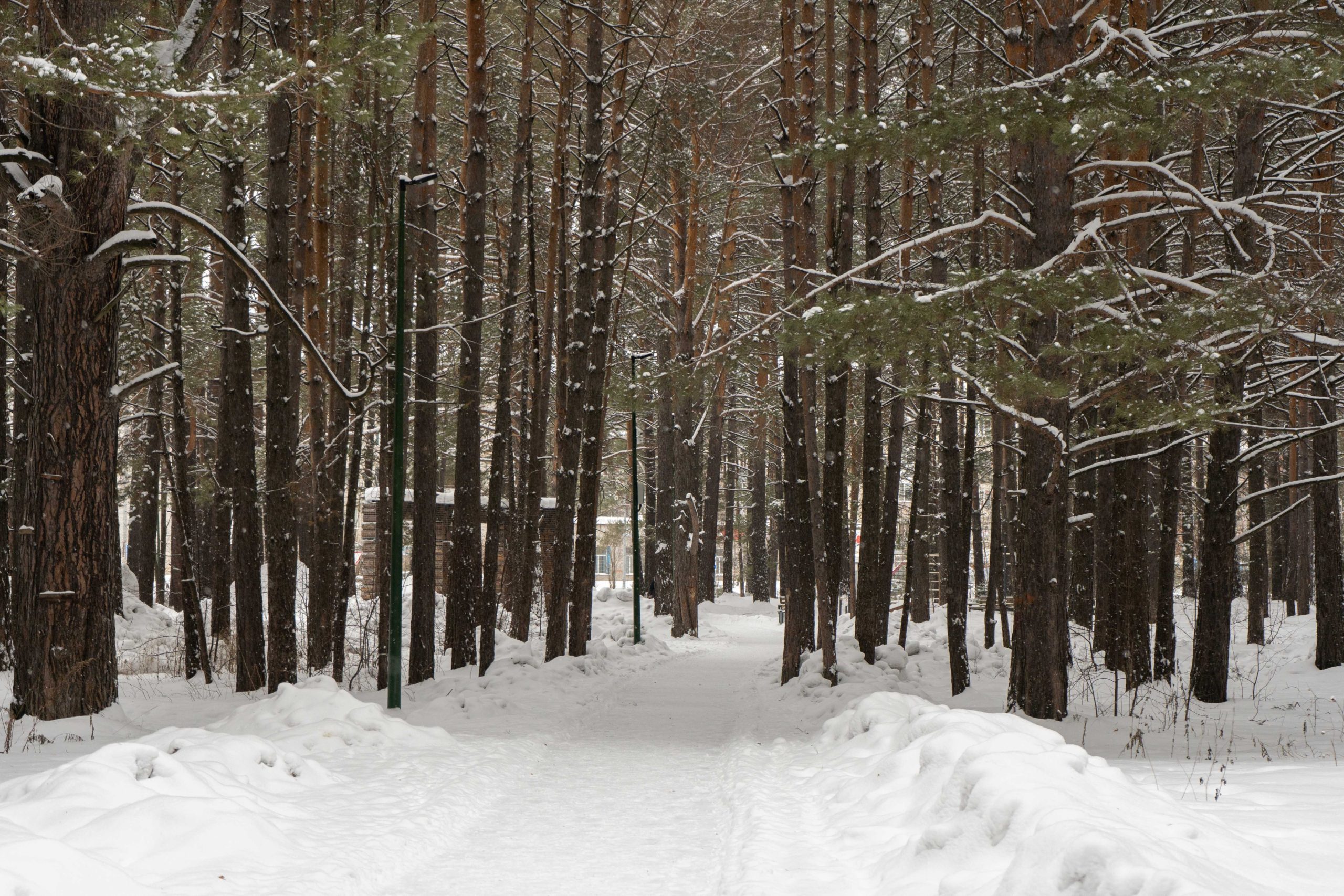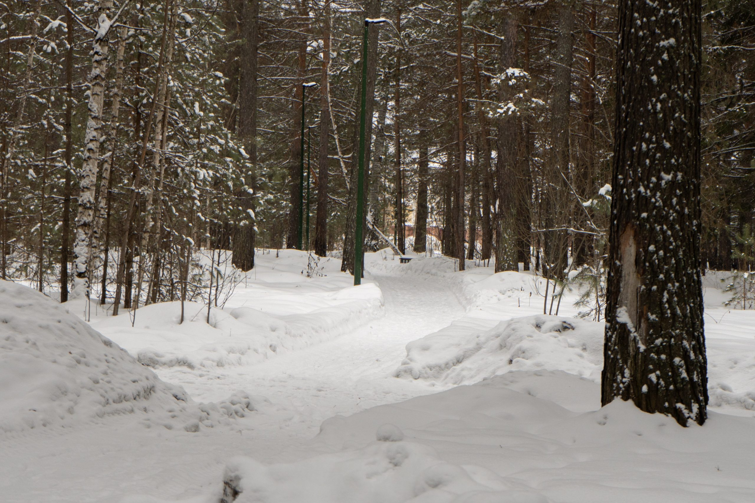 В центральном парке города Лесосибирска плотно растут взрослые сосны. Тут есть пешеходные тропинки, небольшое благоустройство с детской площадкой, скамейками урнами. Дорожки местами асфальтированные но по больше части гравийные. В северной границе парка находится кинотеатр «Луч». Размеры парка около 550x350 м.