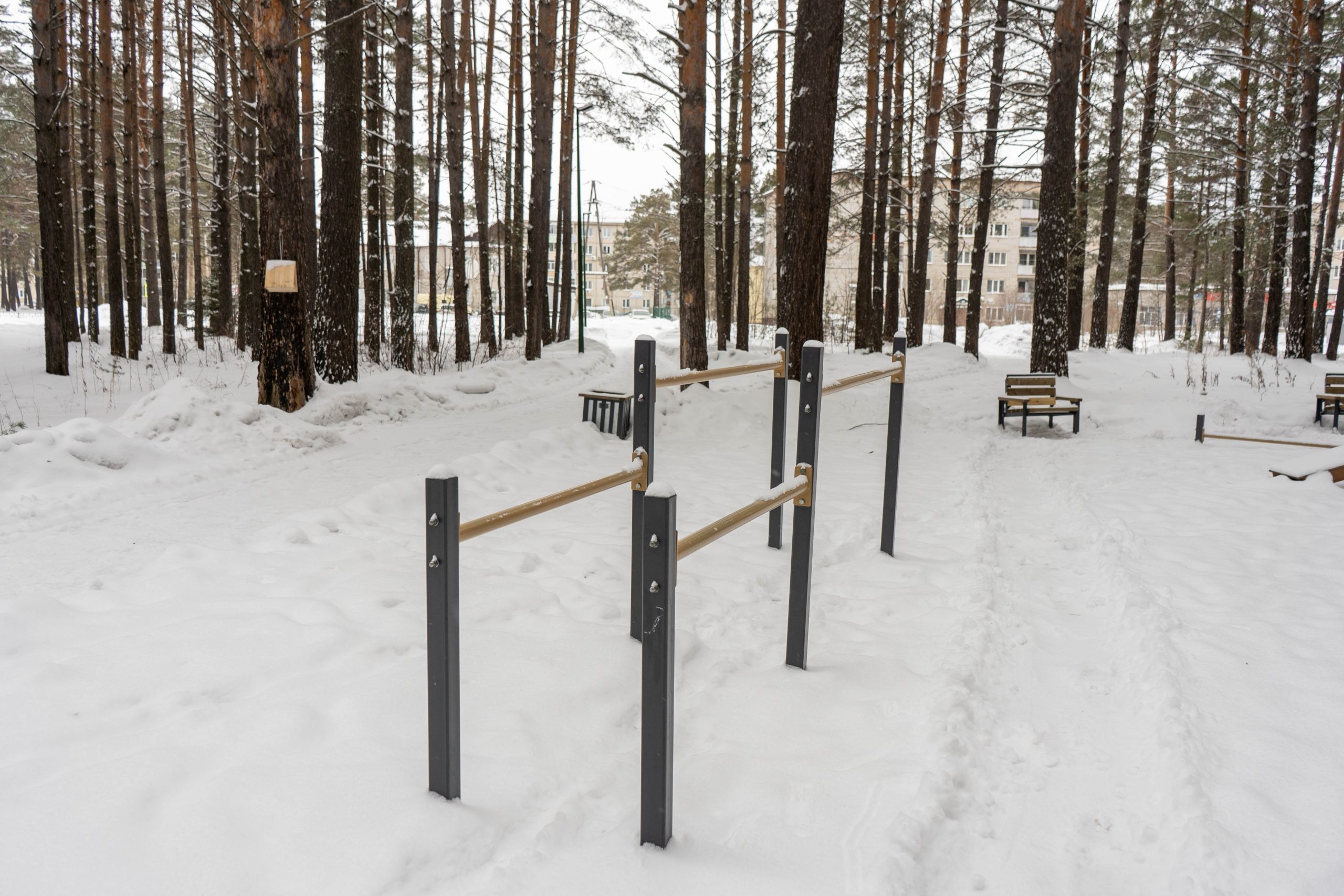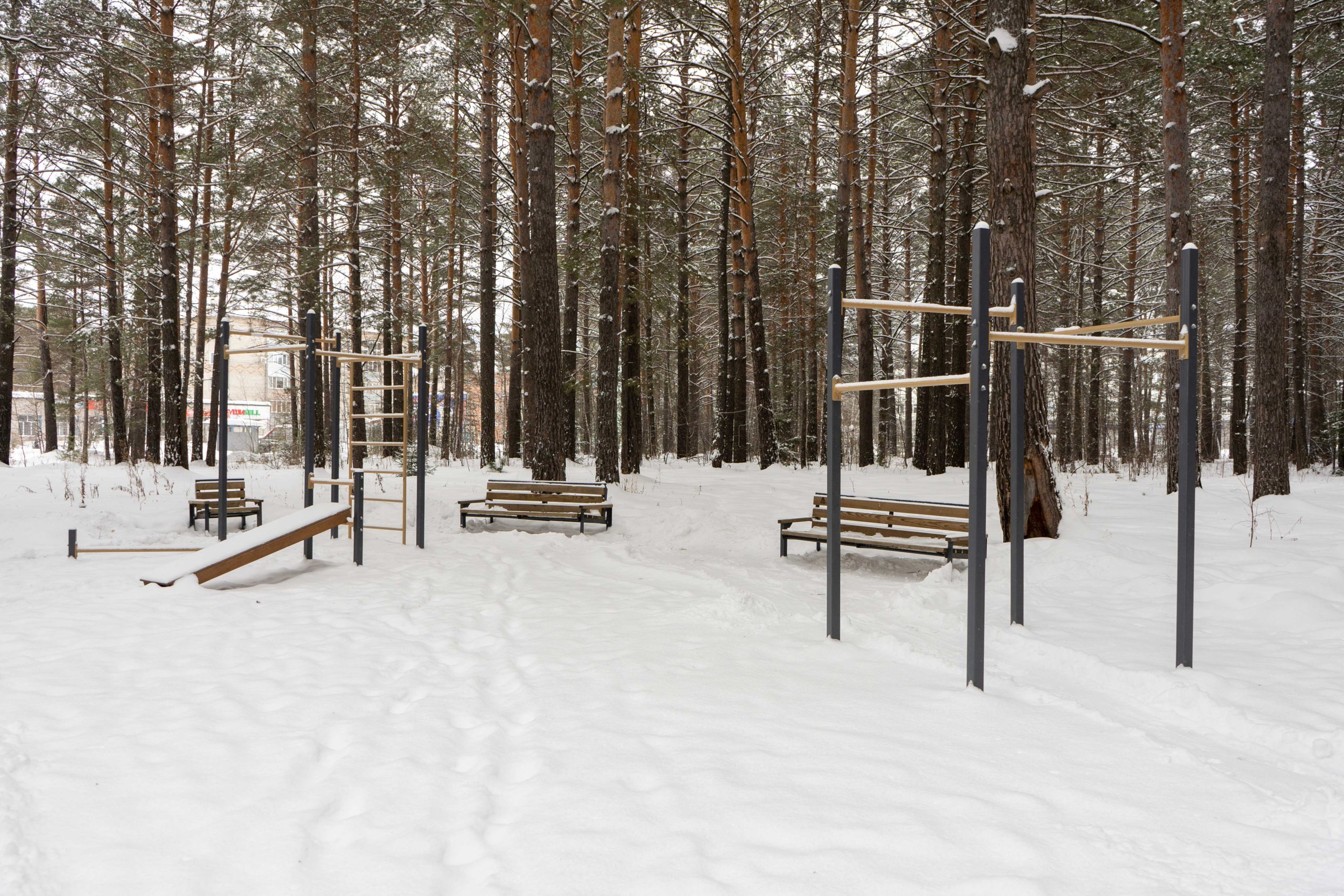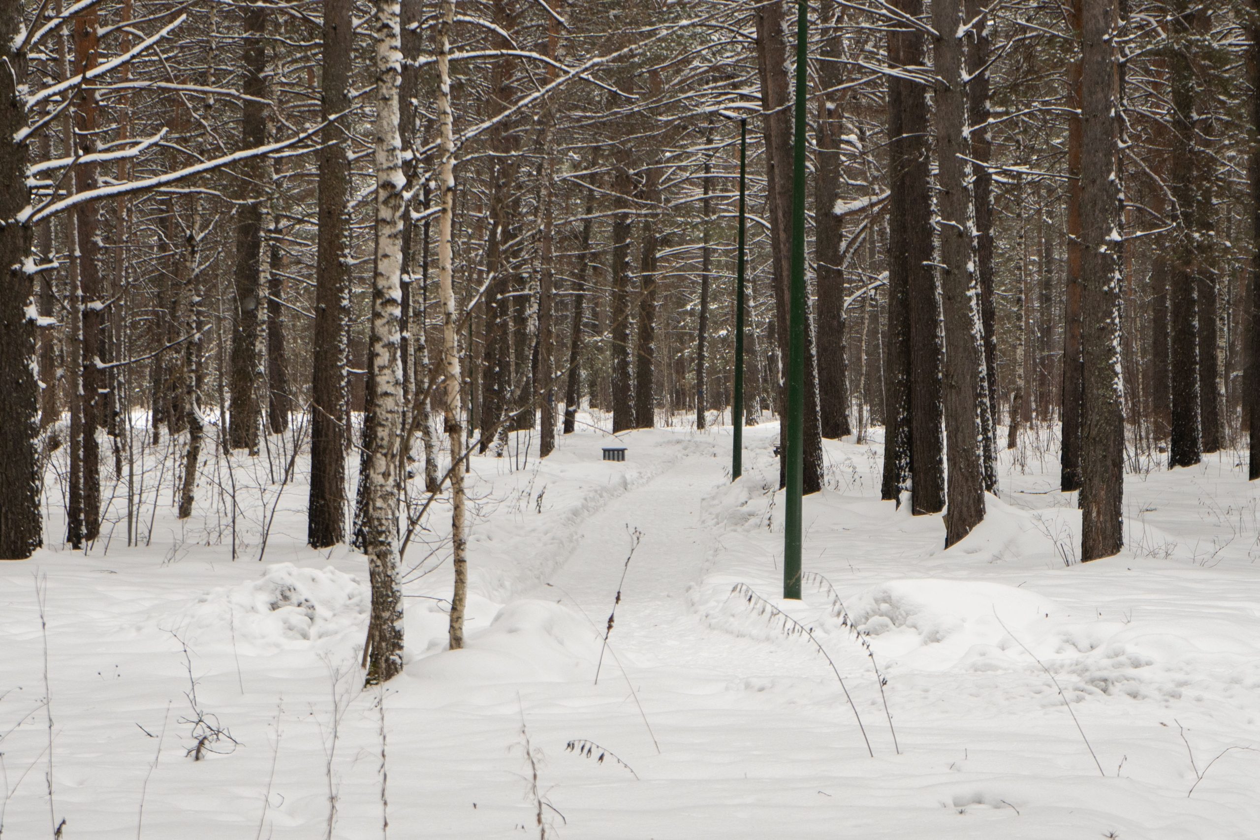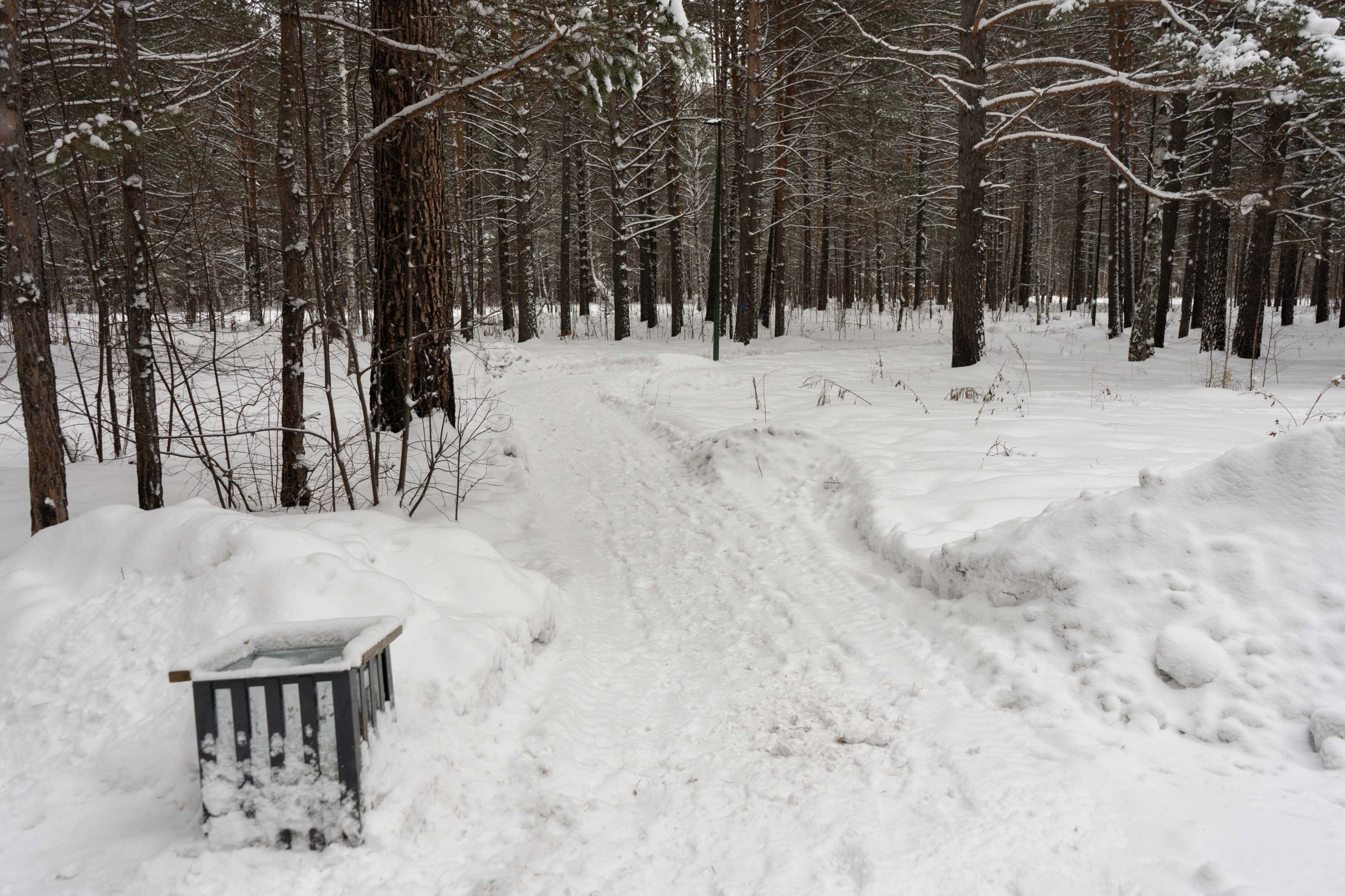 В центральном парке города Лесосибирска плотно растут взрослые сосны. Тут есть пешеходные тропинки, небольшое благоустройство с детской площадкой, скамейками урнами. Дорожки местами асфальтированные но по больше части гравийные. В северной границе парка находится кинотеатр «Луч». Размеры парка около 550x350 м.