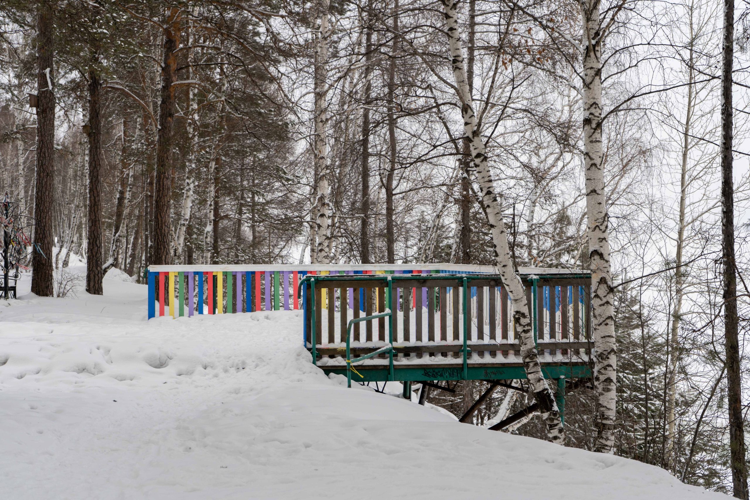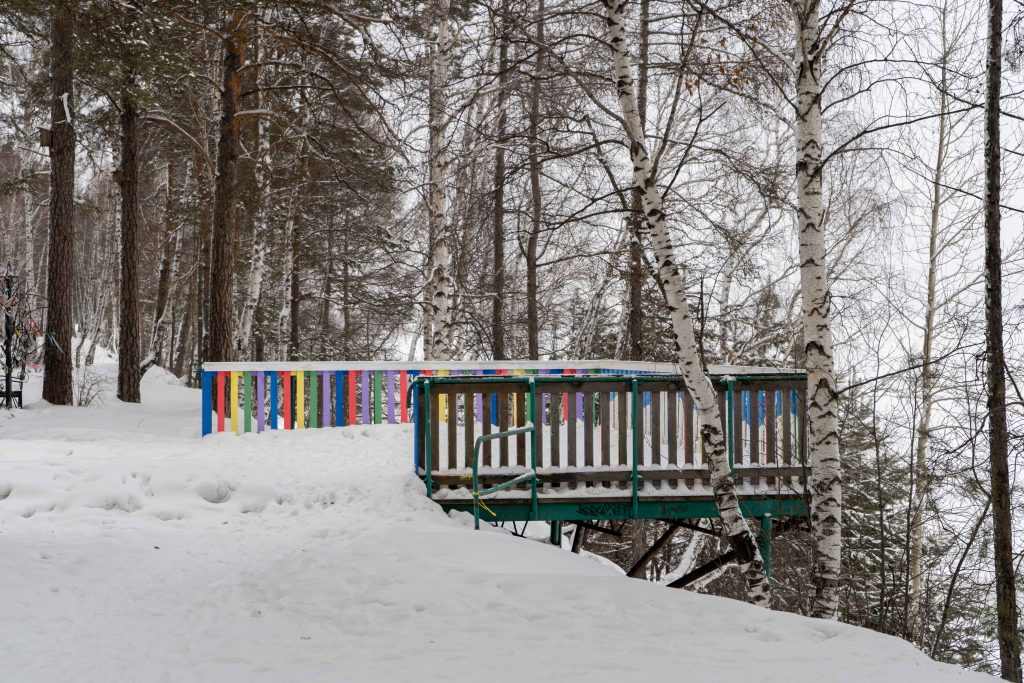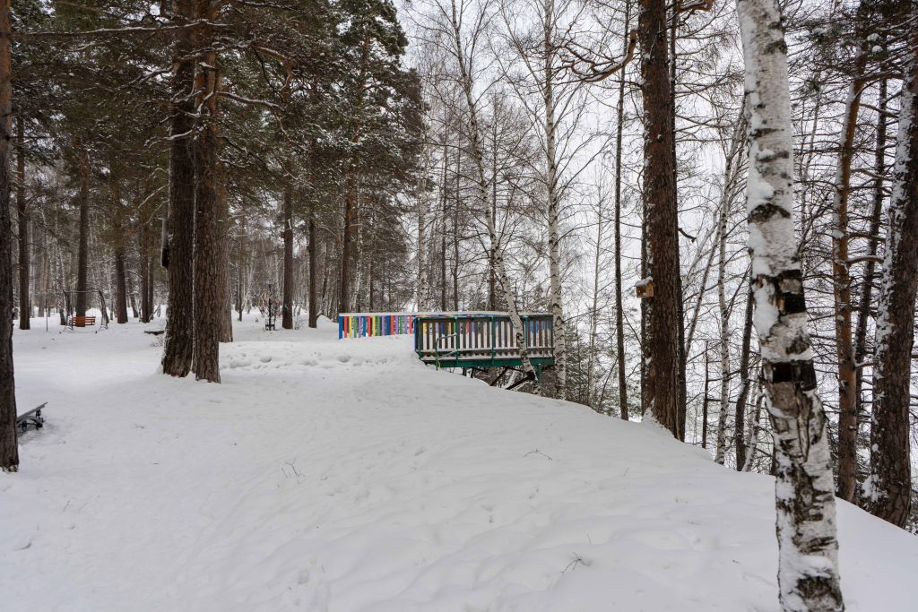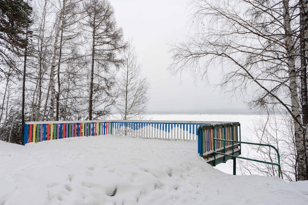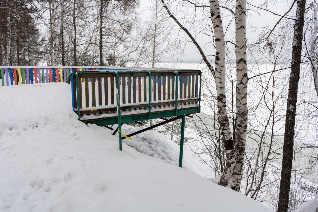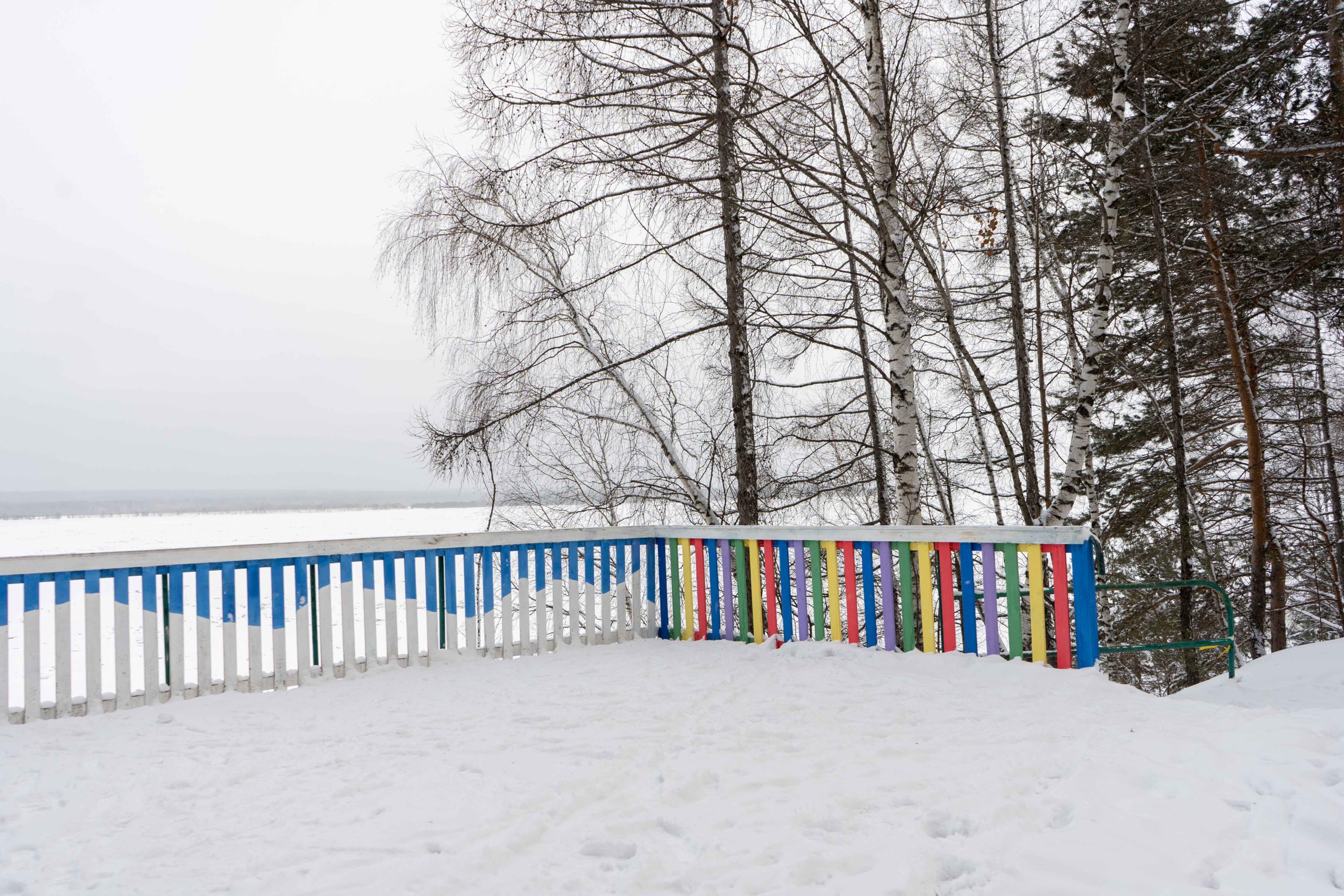 Протяженность набережной около 2 км, есть благоустройство: скамейки, урны, тротуары. Спуск к воде не оборудован, но при желании спуститься не сложно. На протяжении набережной растут взрослые высокие сосны, можно найти современную детскую площадку, смотровые локации, мемориальный сквер, спортивный стадион, сцена для выступления музыкантов, памятники в виде боевой машины и танка.
