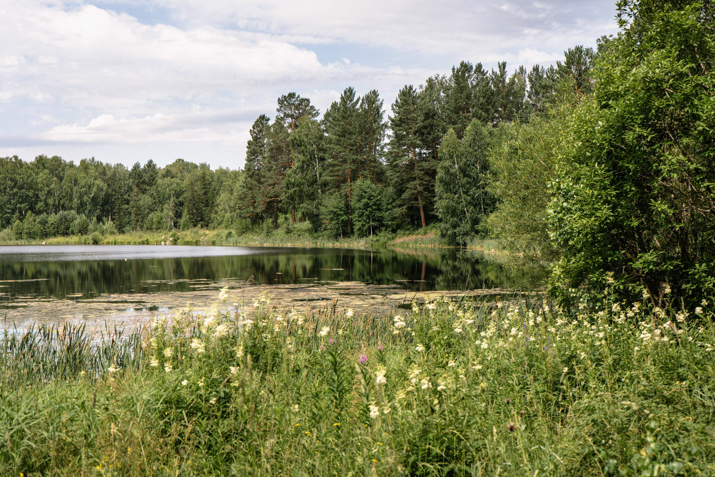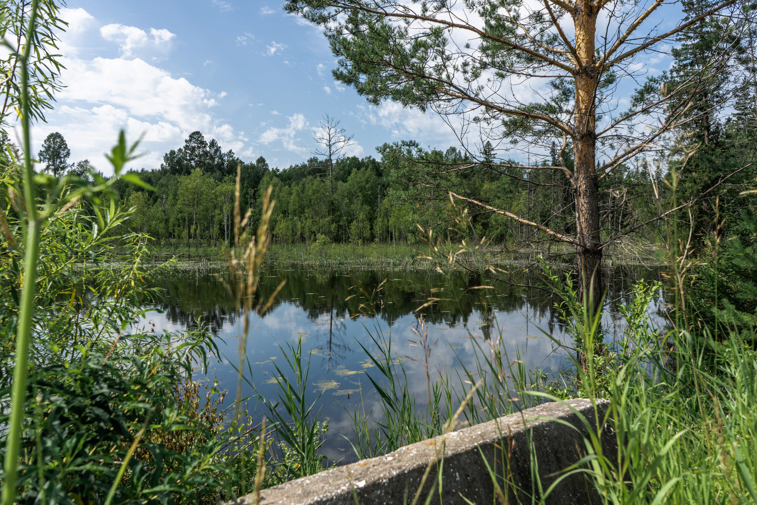 Небольшое озеро, скрытое хвойным лесом, размерами примерно 650 x 250 м. При повороте с трассы начинается дорога из бетонных плит, которая примерно через 1.5-2 км приведёт к озеру, до которого можно дойти пешком или подъехать по грунтовой колее на проходимой машине. В северо-западной части озера меньше леса, туда тоже можно найти подъезд. В некоторых местах присутствуют болотистые места.