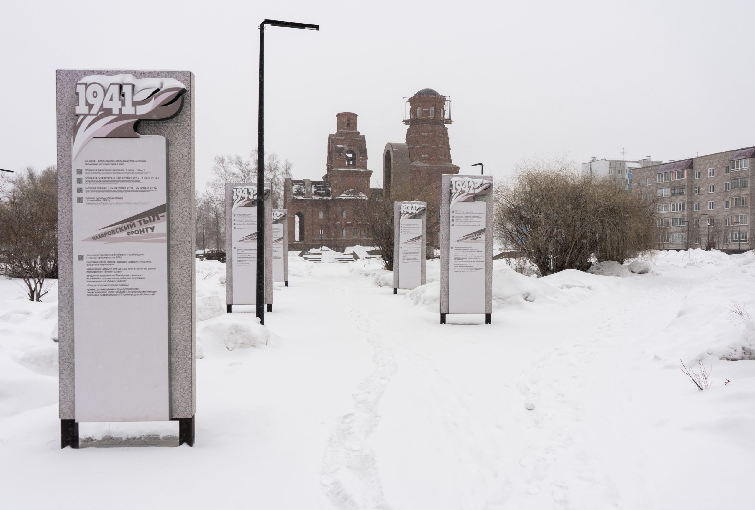 Мемориал посвященный Назаровцам, погибшим в Великой Отечественной войне. Находится недалеко от центра города рядом с недостроенных храмом. Мемориал образует вокруг себя кольцевой хорошо благоустроенный сквер с освещением, скамейками и памятными камнями. К скверу примыкает аллея с информационными стендами, рассказывающими о ключевых датах Великой отечественной войны с точки зрения тыловиков.