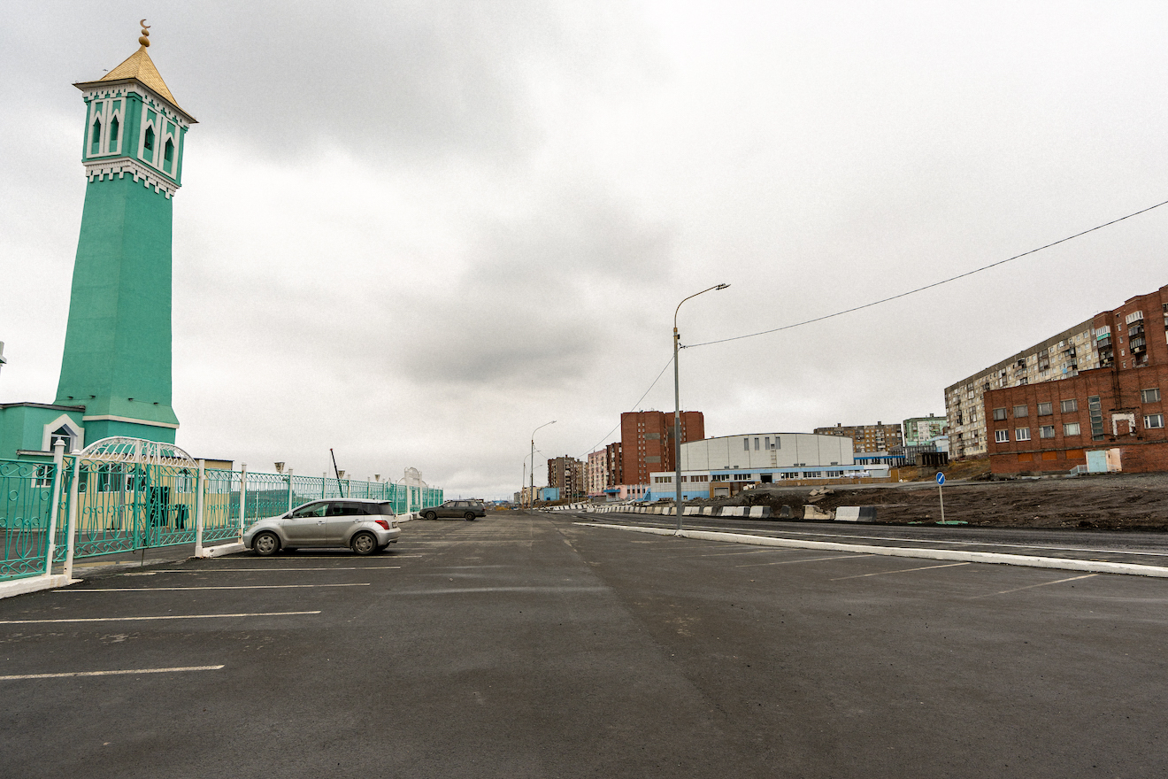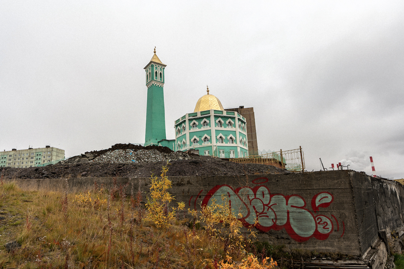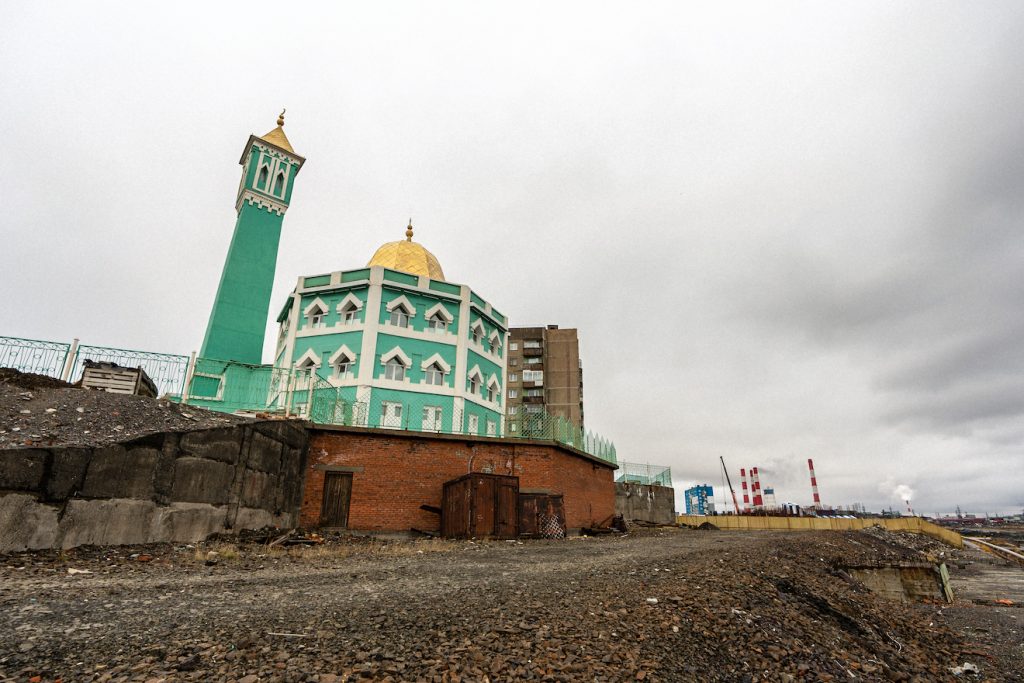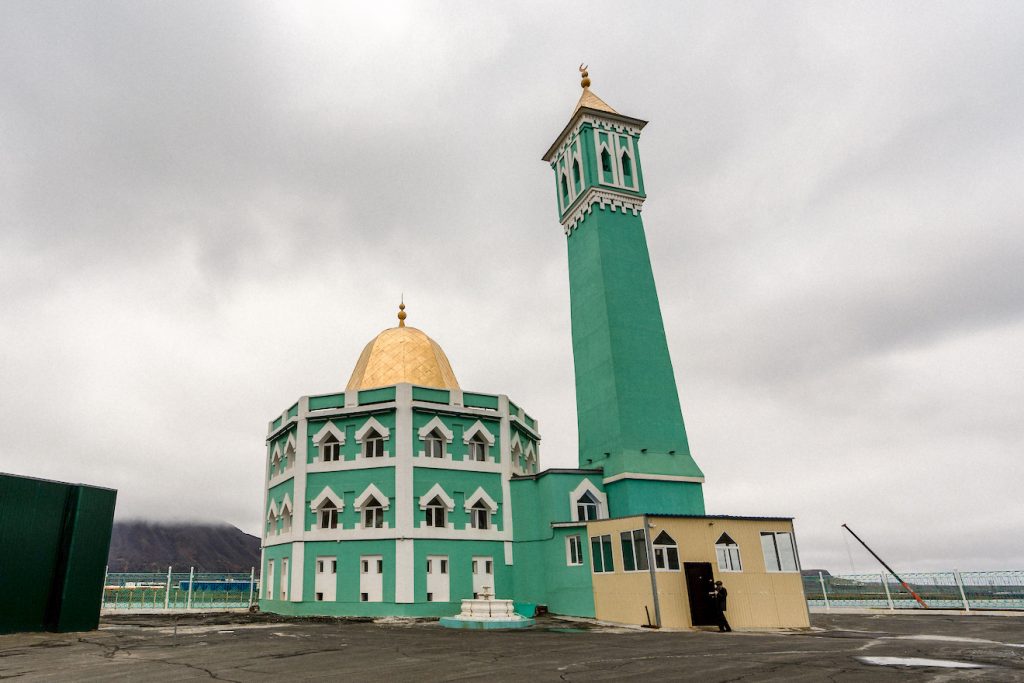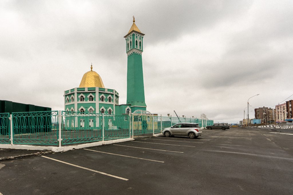 Самая северная мечеть в мире, стоит на берегу озера Долгое, окрашена в бирюзовый цвет, выделяется основной архитектурной доминантой в районе. Минарет высотой 30 метров имеет четырёхугольную форму, вместо традиционно округлой. Так лучше сохраняется тепло и устойчивость против сильных ветров. Зал для молитвы круглый. Мечеть имеет форму звезды и 2 этажа, нижнее помещение используют как медресе.