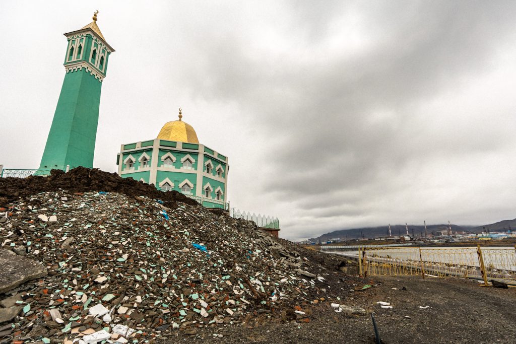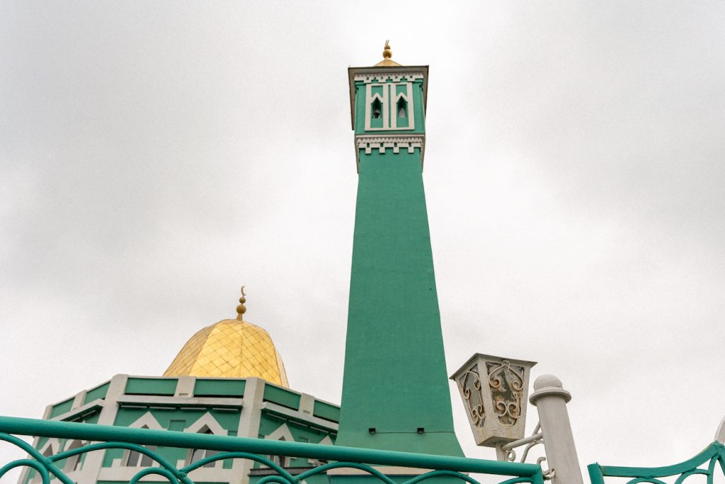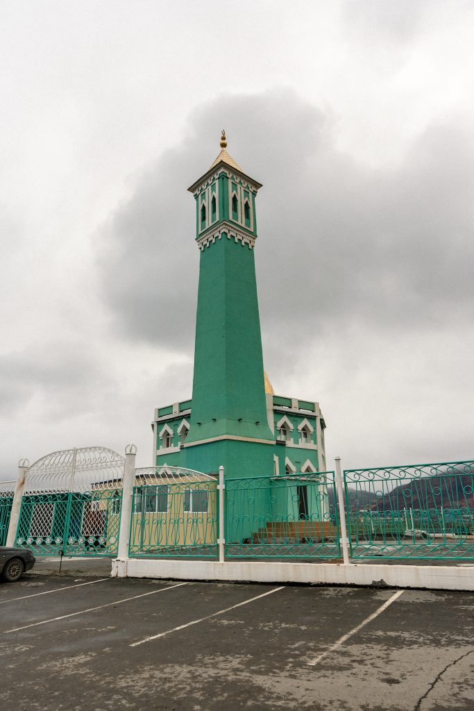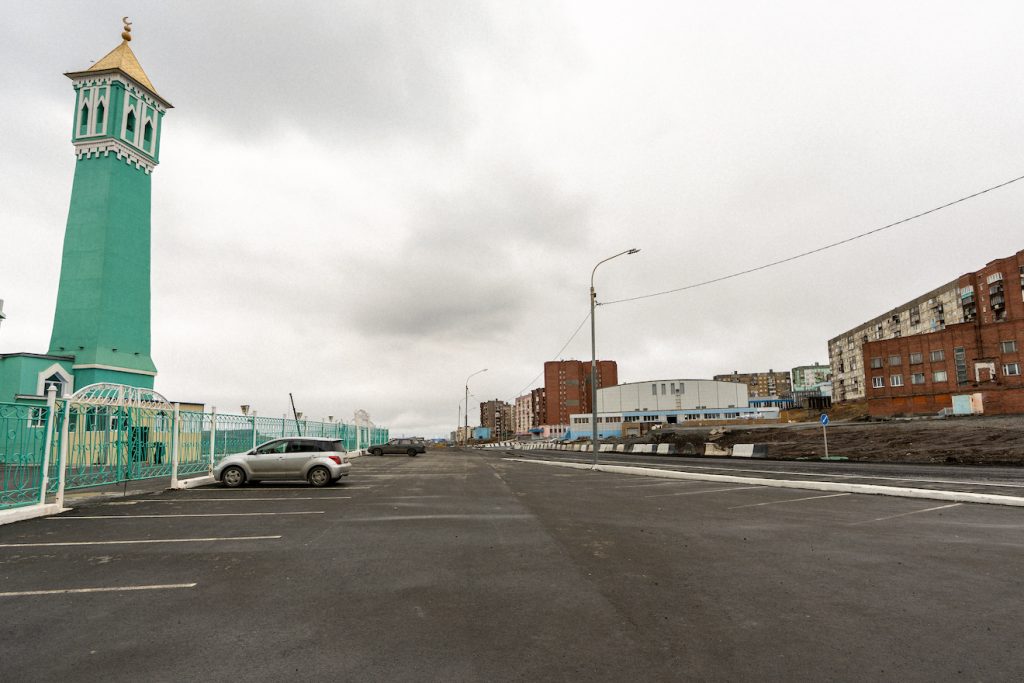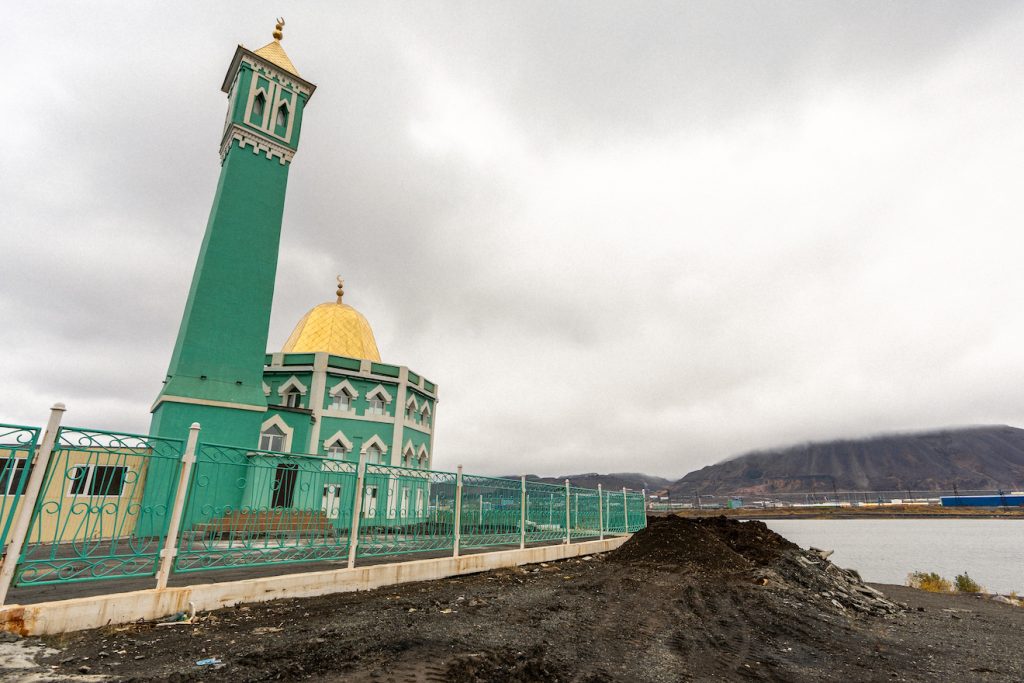 Самая северная мечеть в мире, стоит на берегу озера Долгое, окрашена в бирюзовый цвет, выделяется основной архитектурной доминантой в районе. Минарет высотой 30 метров имеет четырёхугольную форму, вместо традиционно округлой. Так лучше сохраняется тепло и устойчивость против сильных ветров. Зал для молитвы круглый. Мечеть имеет форму звезды и 2 этажа, нижнее помещение используют как медресе.