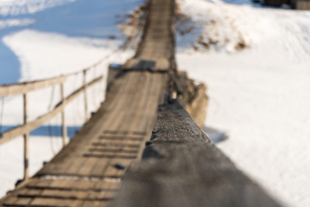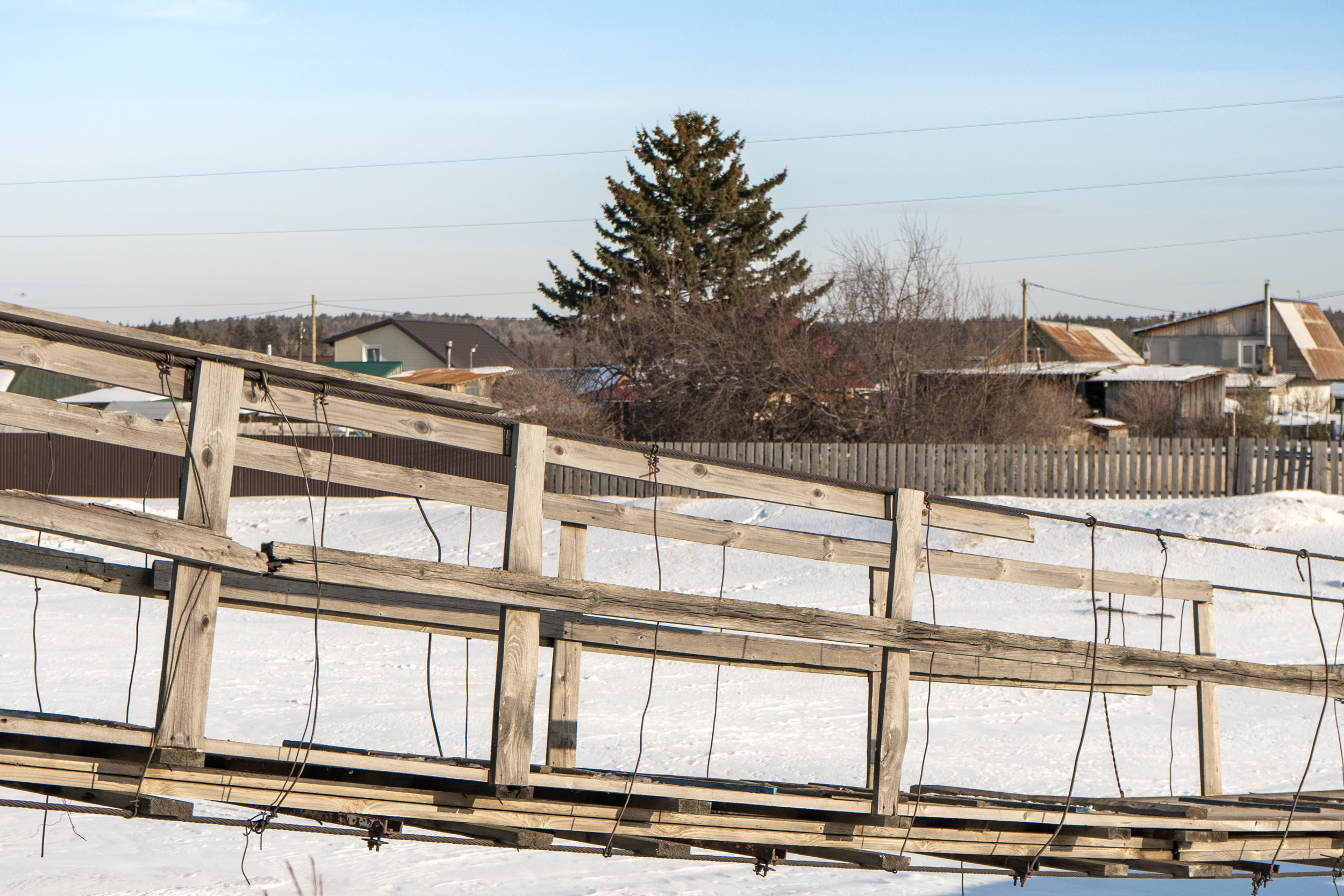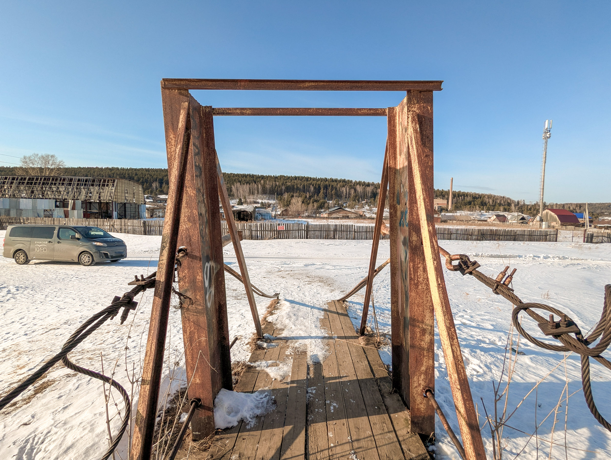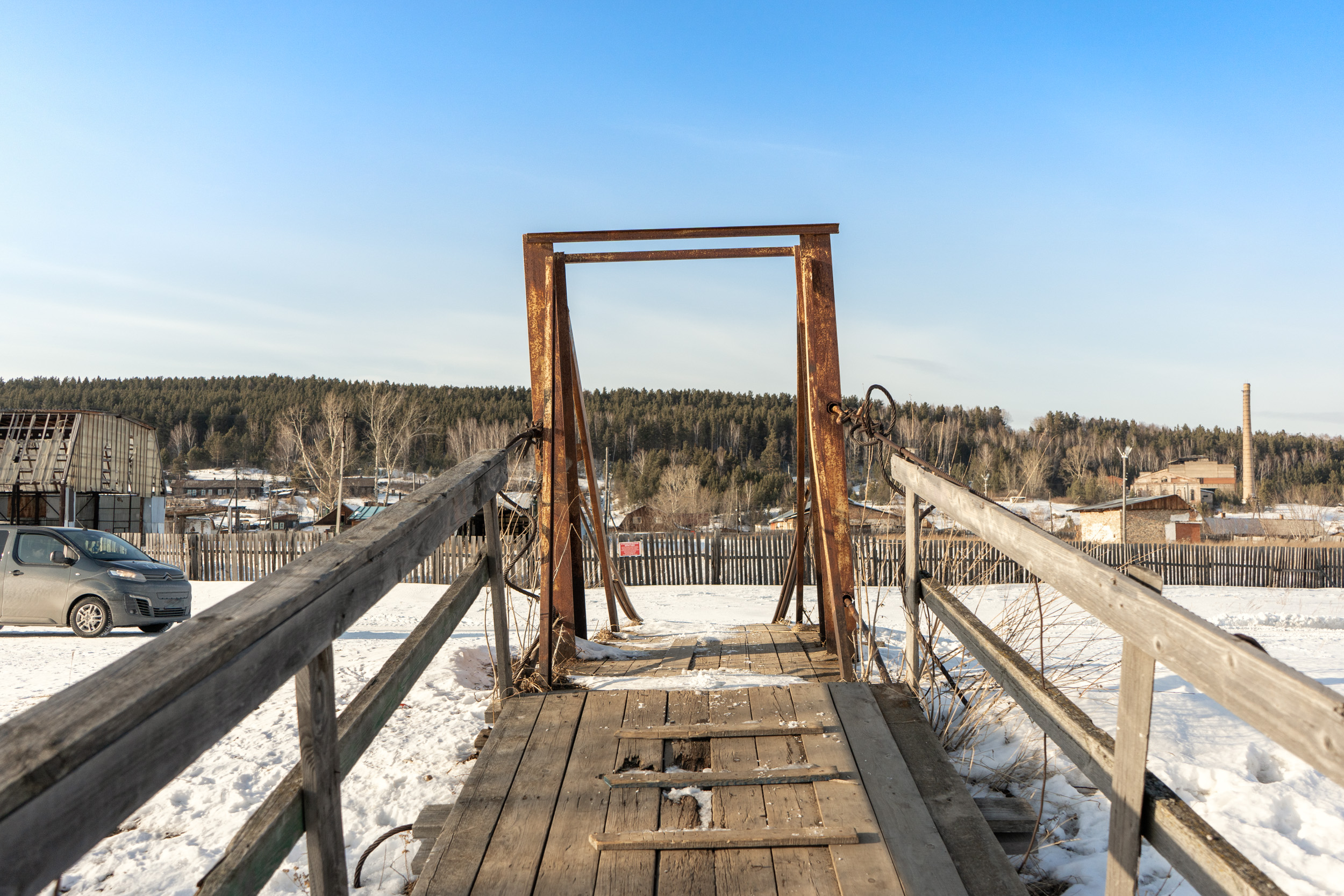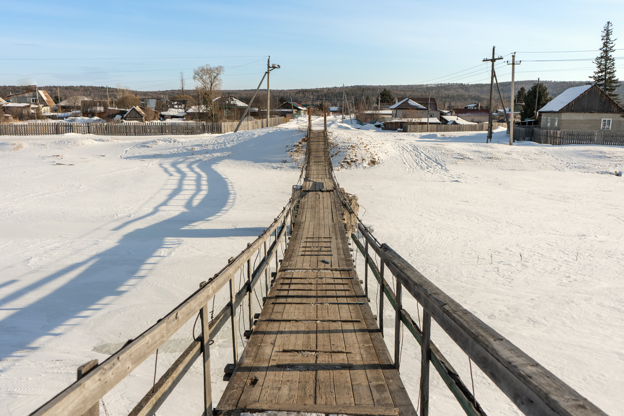 Небольшой подвесной пешеходный мост через реку Качу в п. Памяти 13 борцов находится на пересечении улиц Копылова и Провознюка. Длина моста около 50 м. Изготовлен из дерева и металла, посередине реки есть дополнительная опора из бетона.