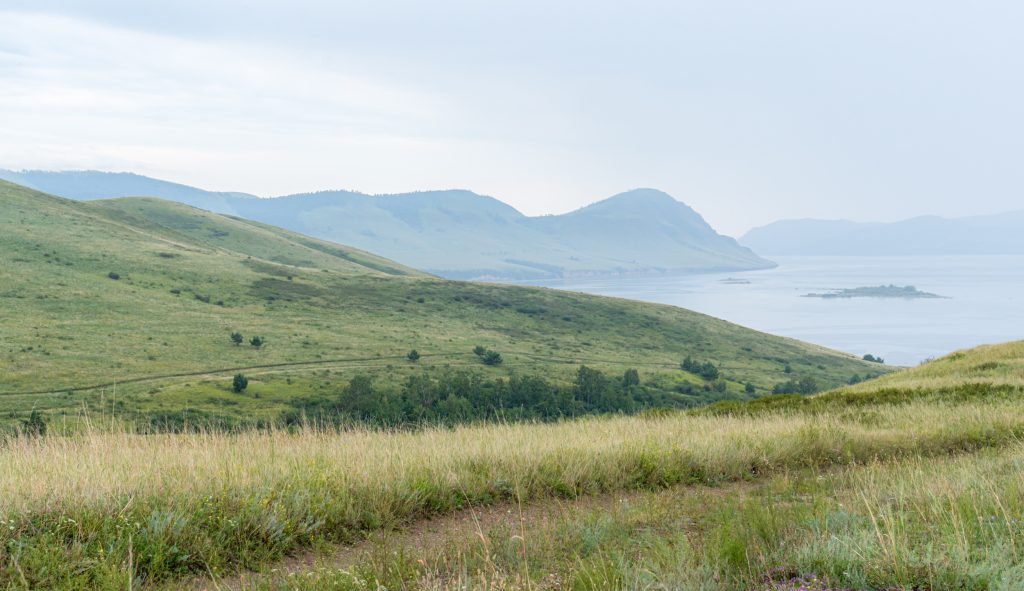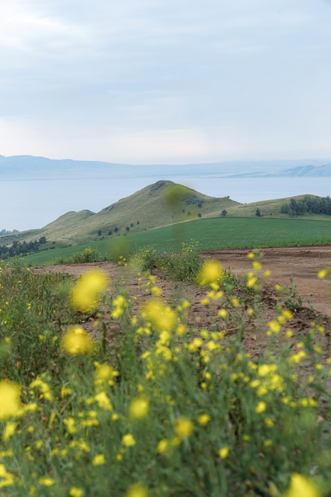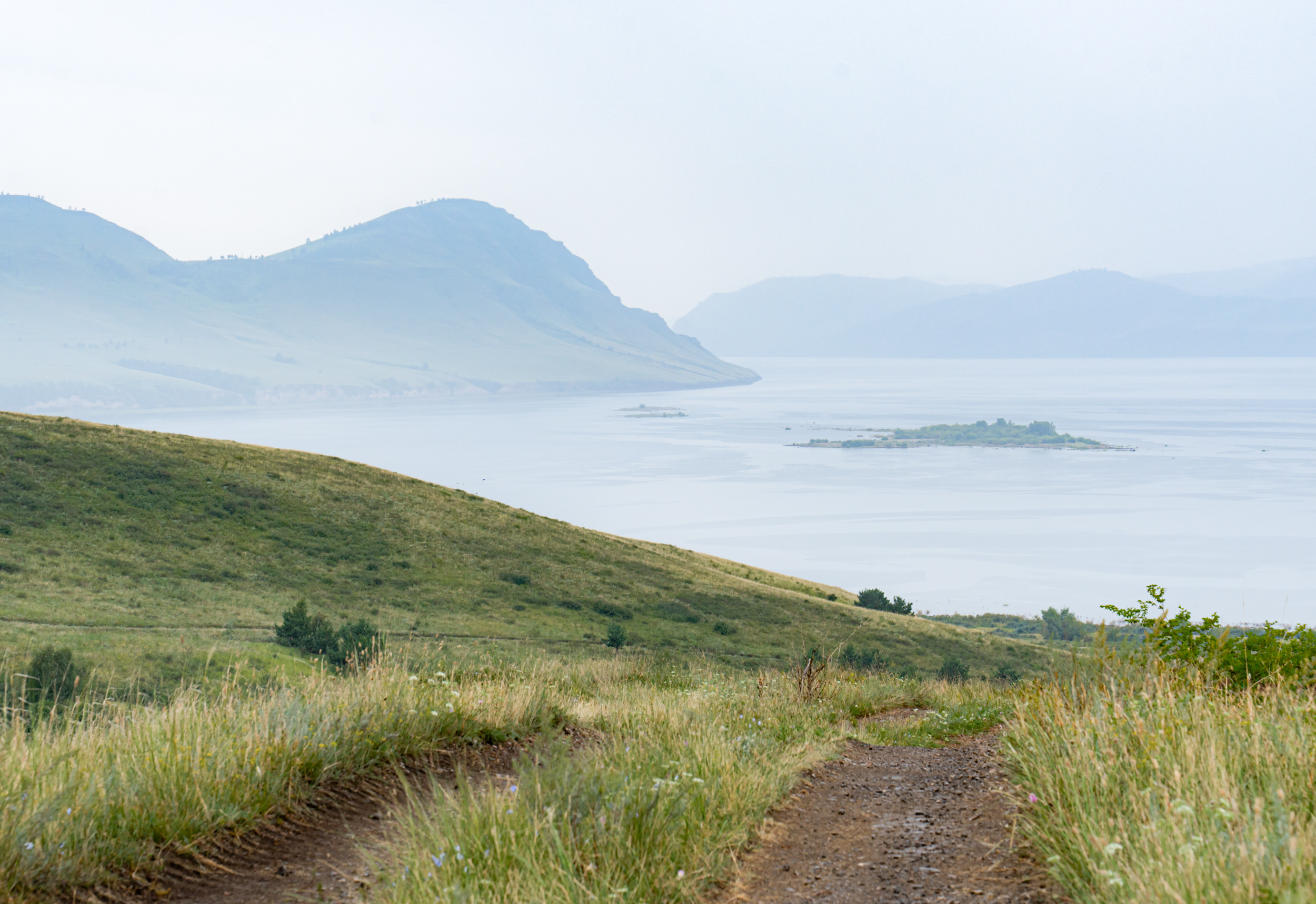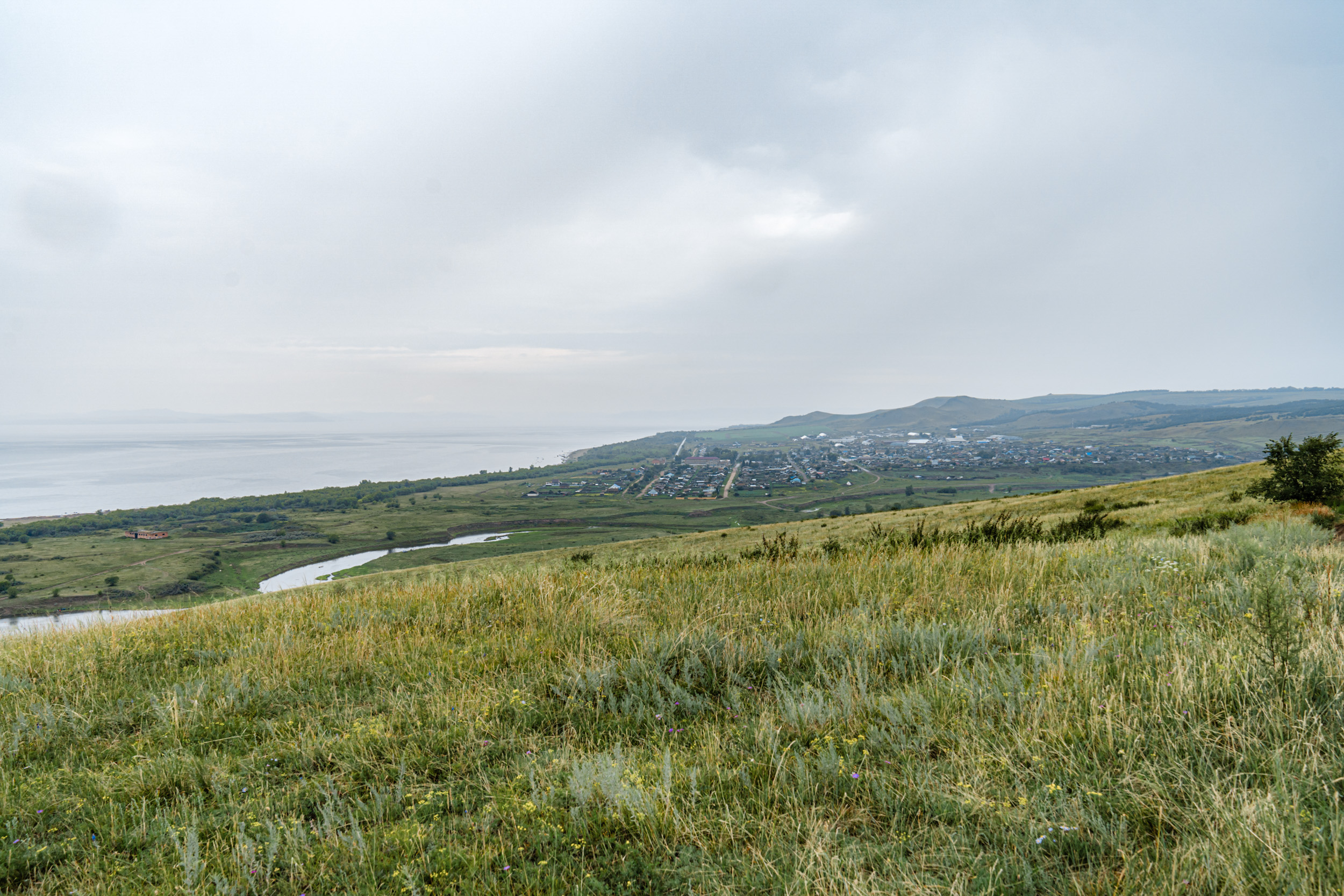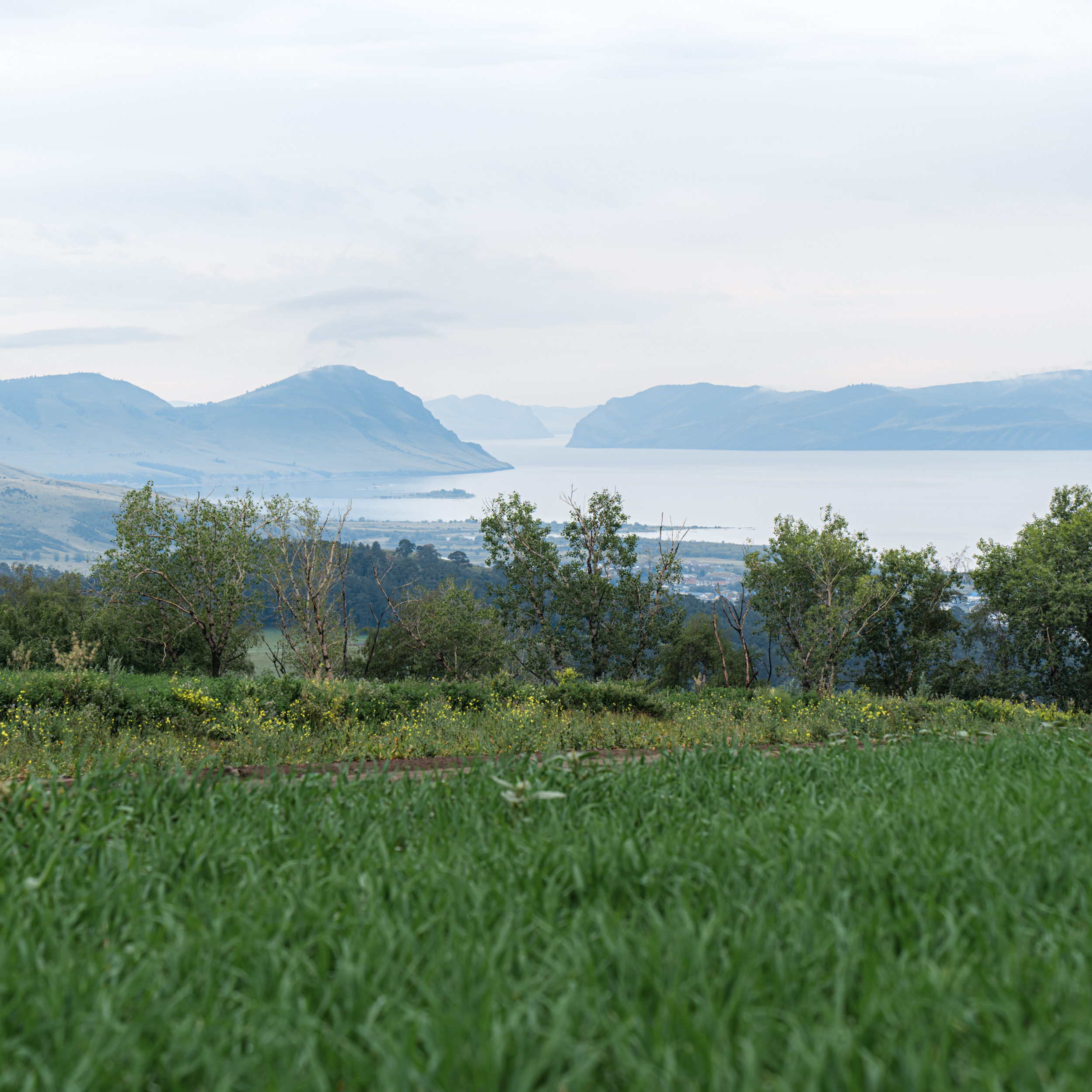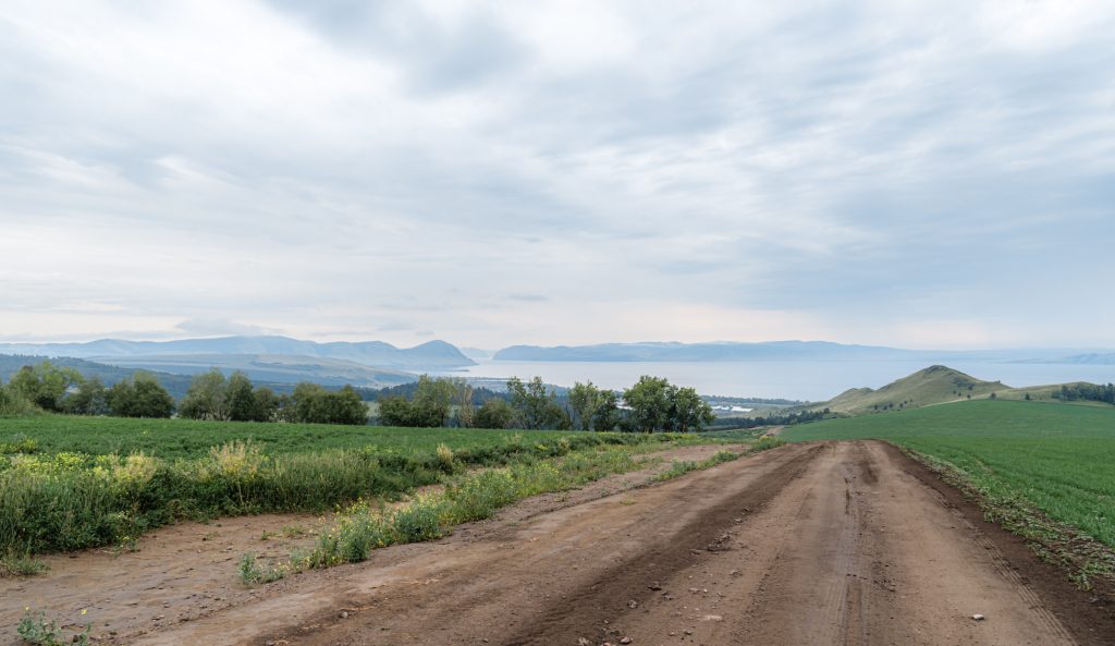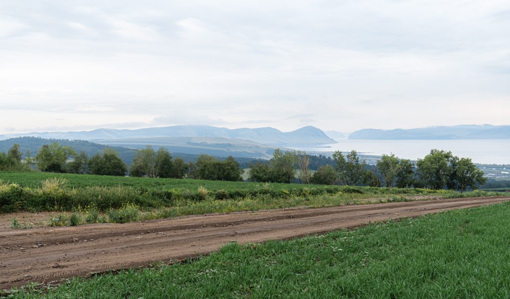 На фото представлены поля в холмистой местности с двух сторон с. Лебяжье на подъезде с северной стороны и на выезде в южную сторону. Село располагается на правом берегу реки Енисея. На южной стороне села течёт река Биря впадая в Енисей. Поля с невысокими холмами и близость к реке с видом на горы в месте сужения водохранилища создают живописную атмосферу.
