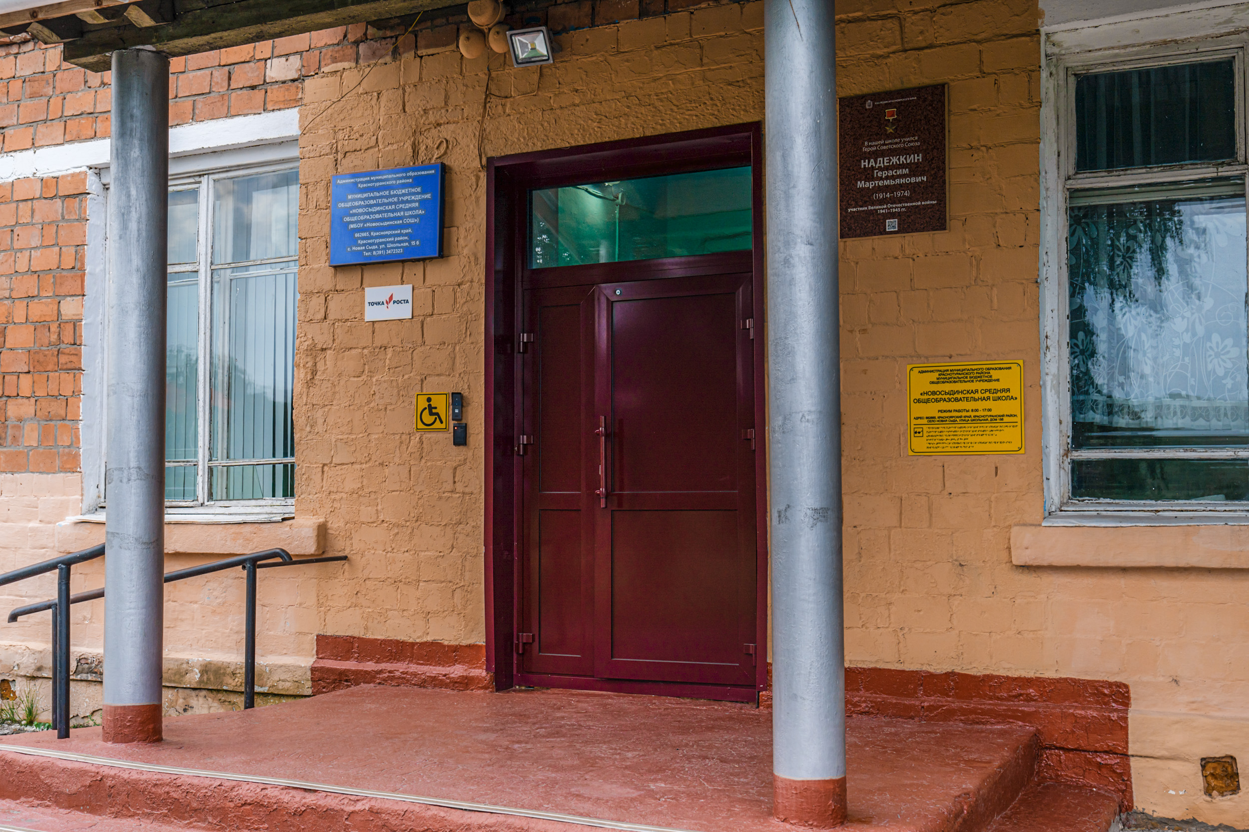 МБОУ «Новосыдинская СОШ» находится в селе Новая Сыда, которое распологается на берегу Сыдинского залива. Одноэтажное кирпичное здание с уютным двором и спорт площадкой для игры в футбол на территории установлен благоустроенный памятник-мемориал воинам односельчанам, павшим в Великой Отечественной войне. Одна из стен школы имеет много памятных надписей выпускников.